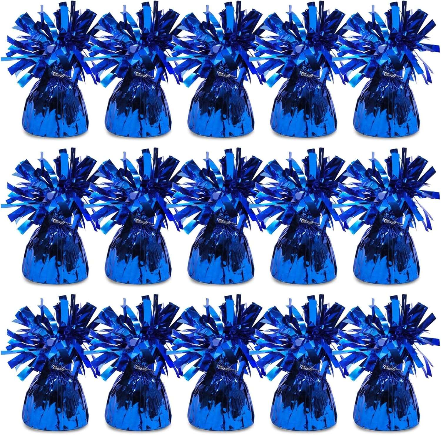 BLUE PANDA Blue Balloon Weights - 4.5 In H x 2.5 In Dia, 6 Oz, Metallic Foil, Pack of 15 - Table Weights