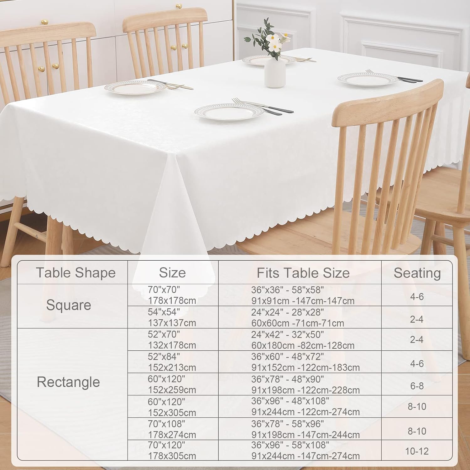- [Elegant Vinyl Tablecloth] Featuring floral embossed tablecloth with pretty scalloped edges, nice warm tone and soft touch add an elegant touch to these tablecloths, they are suited for light up your fancy dinner.