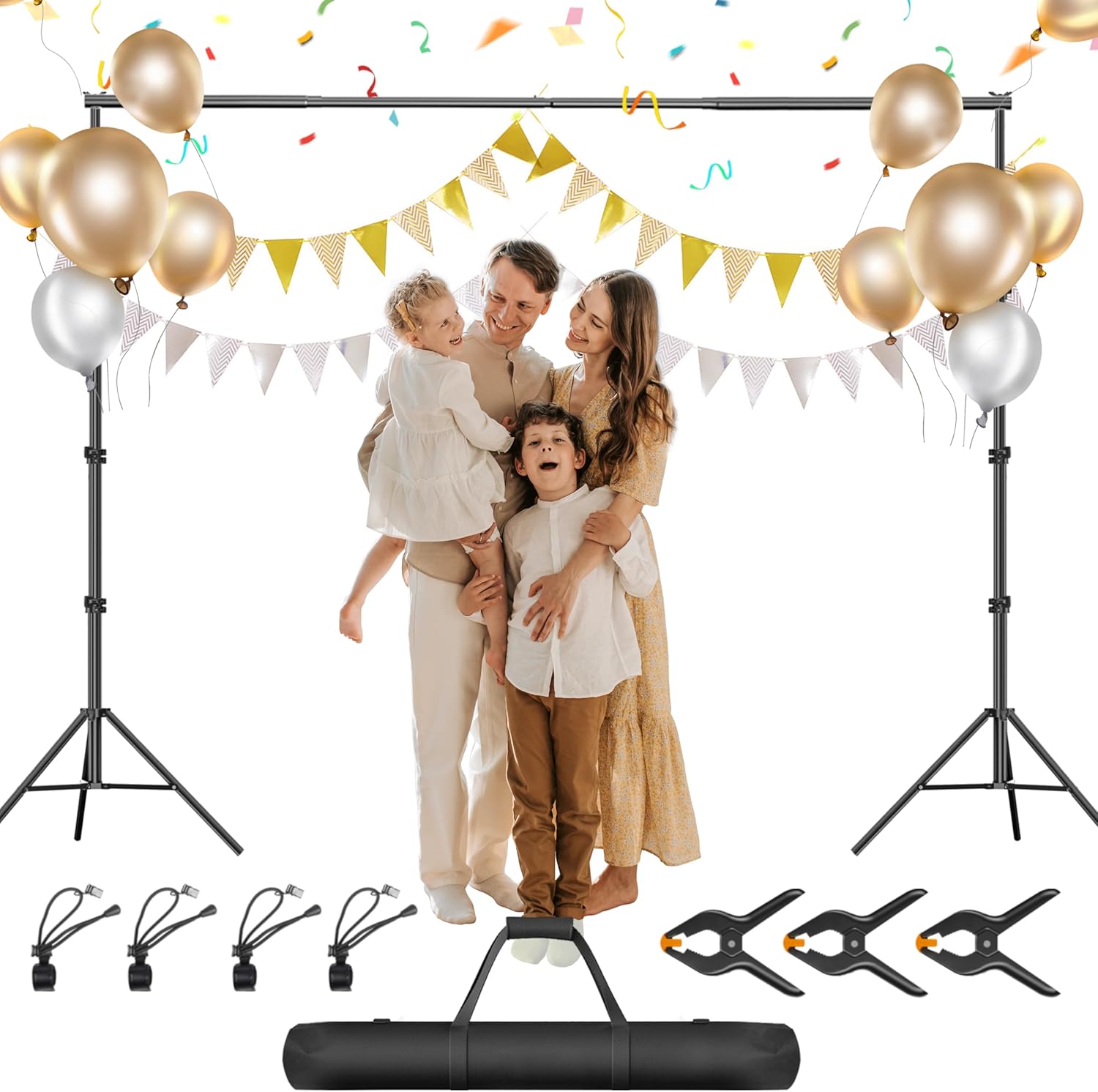 Photo Backdrop Stand, 8.5 x 10 ft Back Drop Adjustable Stands, Photography Background Support System Kit with Carry Bag, Clips and Clamps for Photo Video Studio, Parties, Wedding