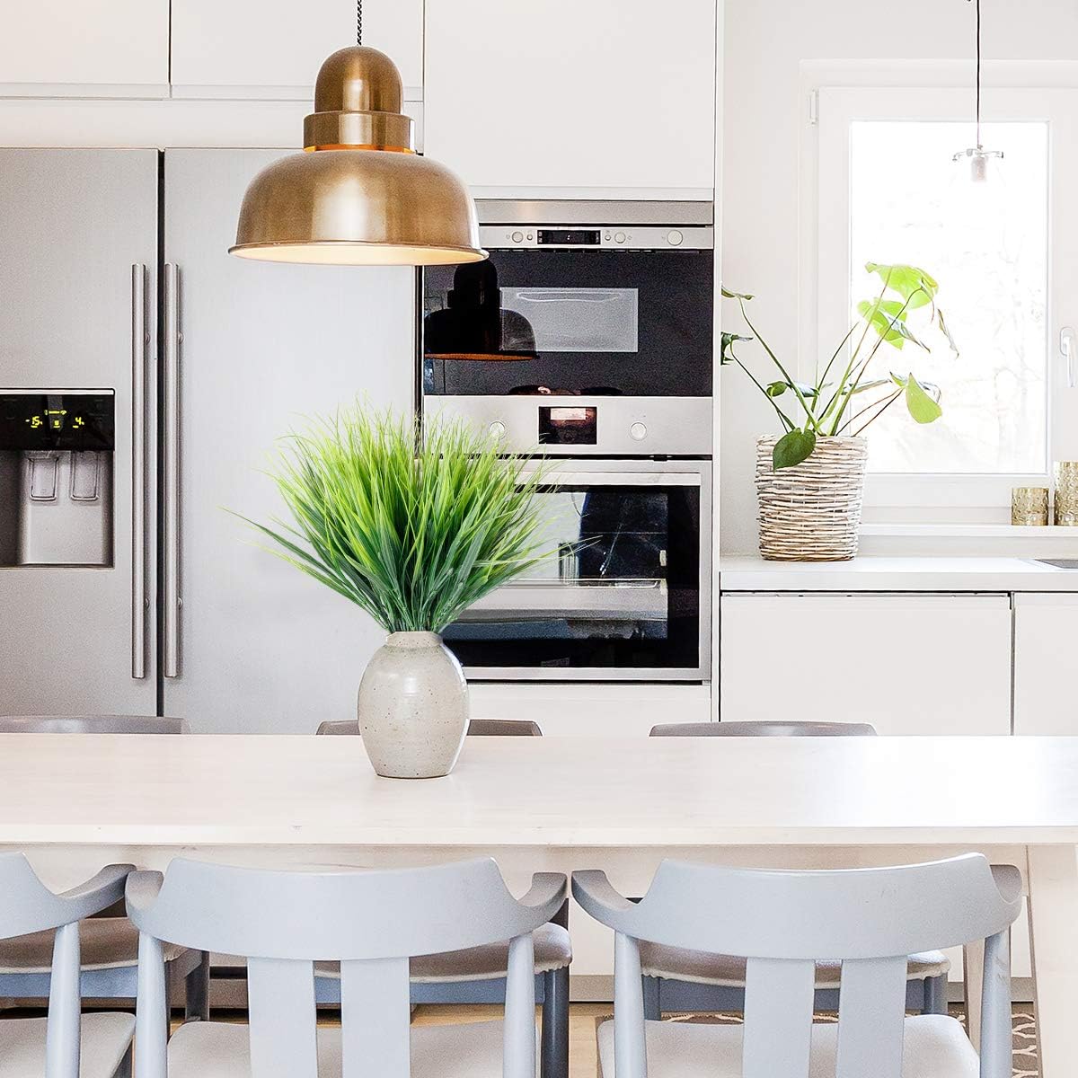 - 【Multifunctional decoration】-designed for outdoor indoors decoration. These lifelike grasses add a charming charm to your front porch, walkway, garden,kitchen, windowsill,living room, dining table, bedroom, terrace and garden fence. Fake grass are very suitable for daily home garden decoration, birthdays, holidays, weddings, memorial places, DIY projects, etc.