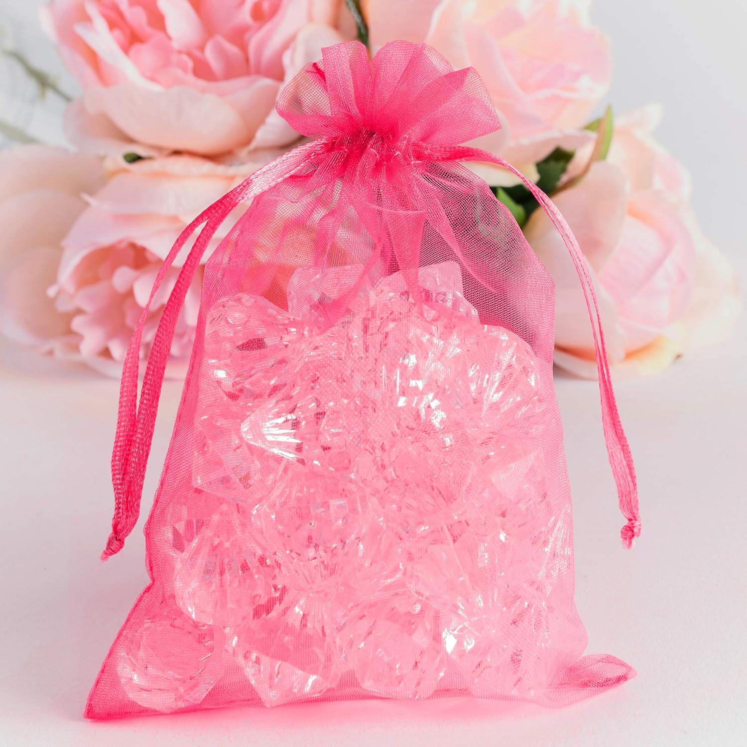 Super Z Outlet 100 Pack 4x6 Inch Mini Sheer Drawstring Organza Transparent Bags Jewelry Sack Pouches for Wedding, Party Decorations, Arts & Crafts Gifts (Fuchsia)