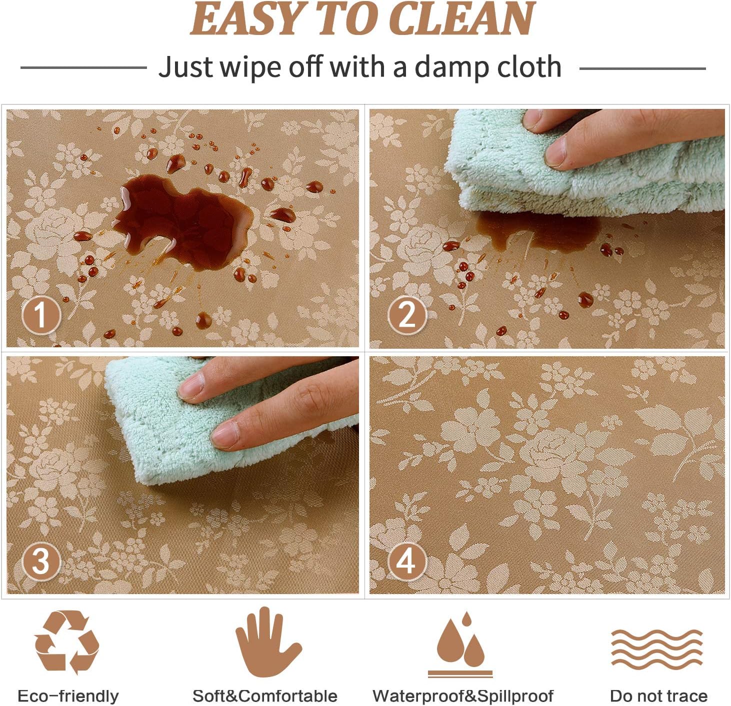- [Easy Cleaning] The surface of the Smiry tablecloth is impervious to water and spills, allowing you to effortlessly wipe away liquids with a damp cloth or napkin. For thorough cleaning, simply toss it in the washing machine with cold water and then dry it on a gentle cycle or under the shade.
