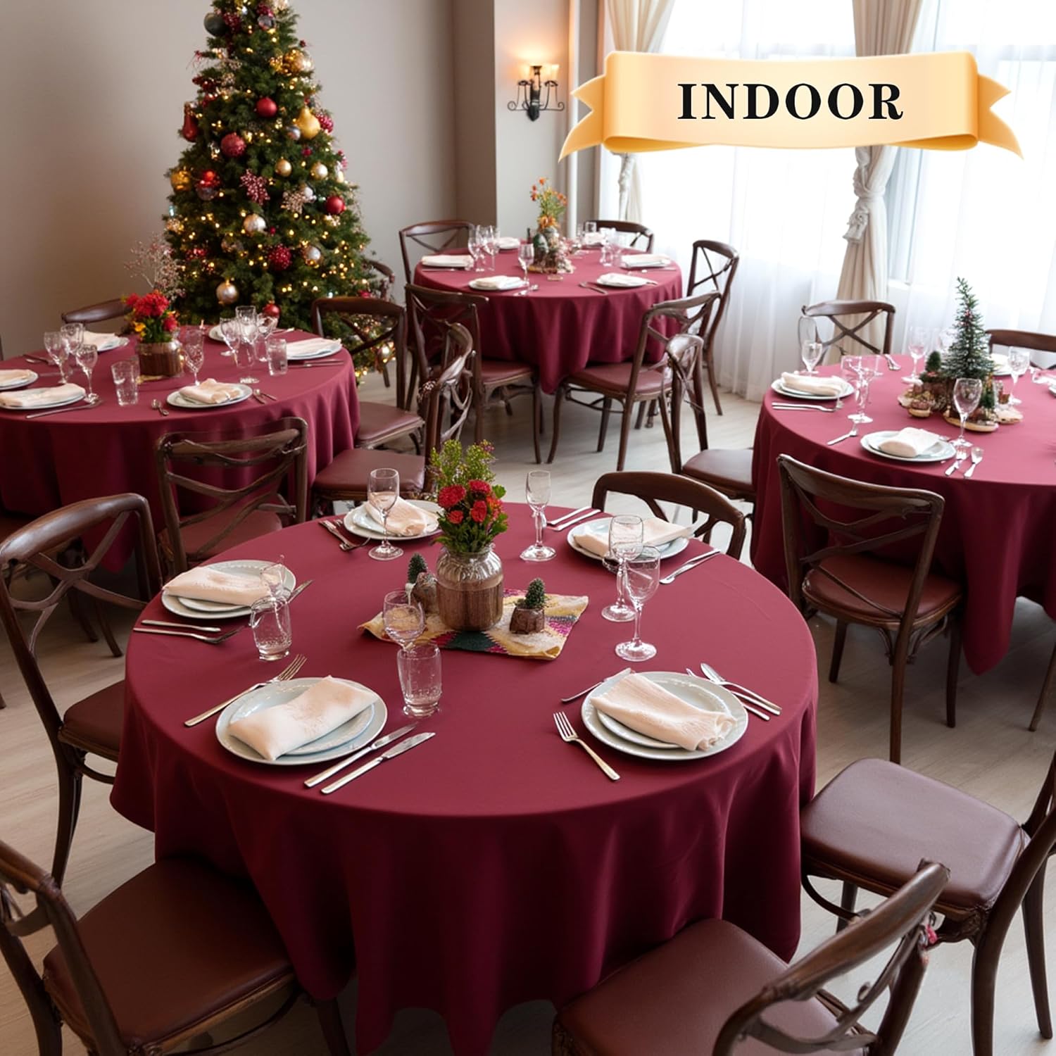 sancua Round Tablecloth - 120 Inch - Water Resistant Spill Proof Washable Polyester Table Cloth Decorative Fabric Table Cover for Dining Tables, Buffet Parties and Camping, Burgundy