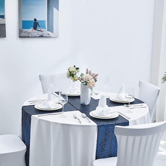 - Size: The 12" x 72" navy sequin table runner is suitable for tables that can accommodate 4-6 people