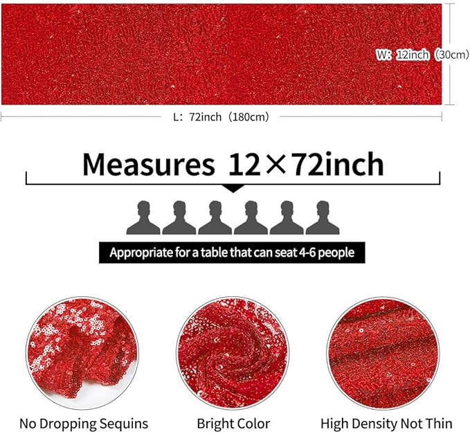 - Size: The 12" x 72" red sequin table runner is suitable for tables that can accommodate 4-6 people. Buy bigger pack, save more.