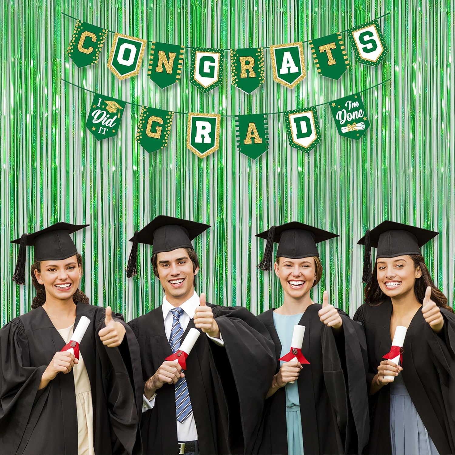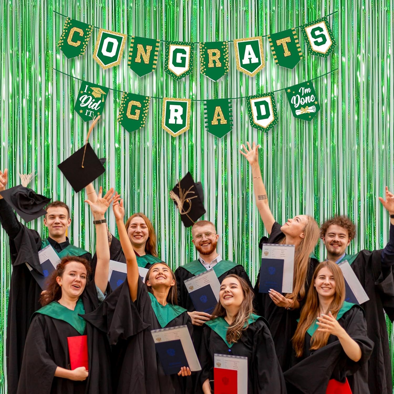 Foil Fringe Curtains April fool's Day Decorations - Melsan 3 Pack 3.2 x 8.2 ft Green Tinsel Curtain Party Photo Backdrop for Birthday Party Baby Shower or Graduation Decorations