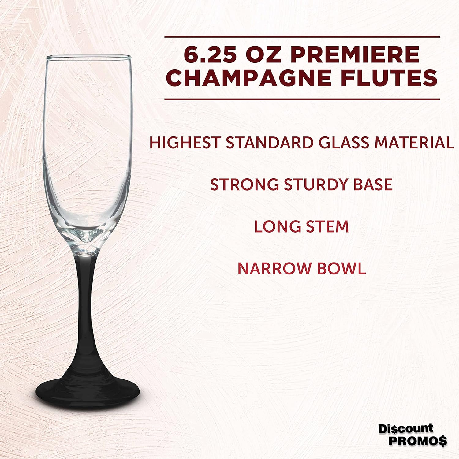 DISCOUNT PROMOS Premiere Champagne Flutes 6.25 oz. Set of 10, Bulk Pack - Elegant Drinkware for Weddings, Events, & Promotional Gifts - Black