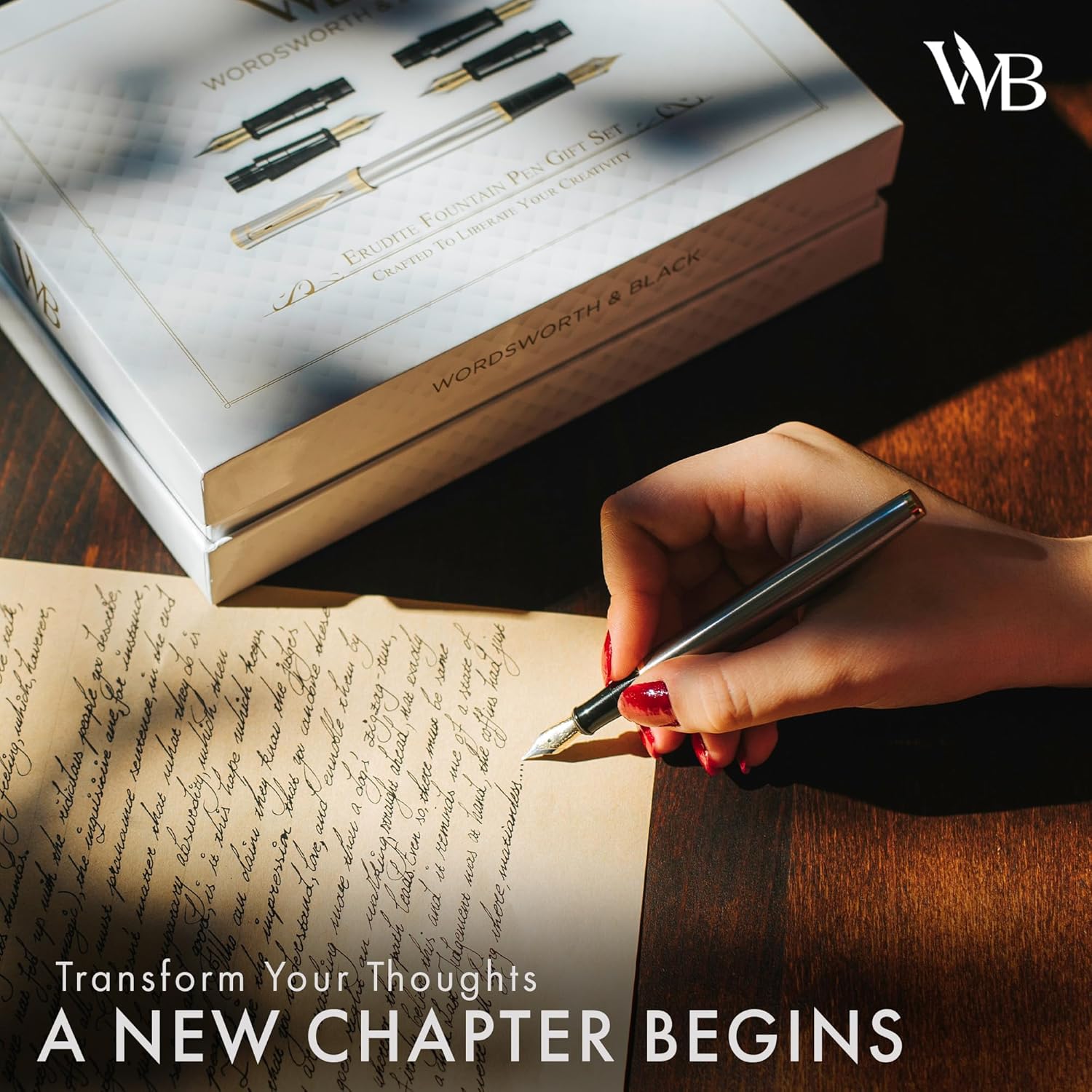 ![Wordsworth & Black Fountain Pen Gift Set, Includes Ink Bottle, 6 Ink Cartridges & A Refill Converter, 4 Replacement Nibs, Premium Package, Journaling, Calligraphy, Smooth Writing Pens [Black Chrome]](http://adventurebounds.com/cdn/shop/files/81JTdVFm9QL._AC_SL1500.jpg?v=1762273707&width=1445)