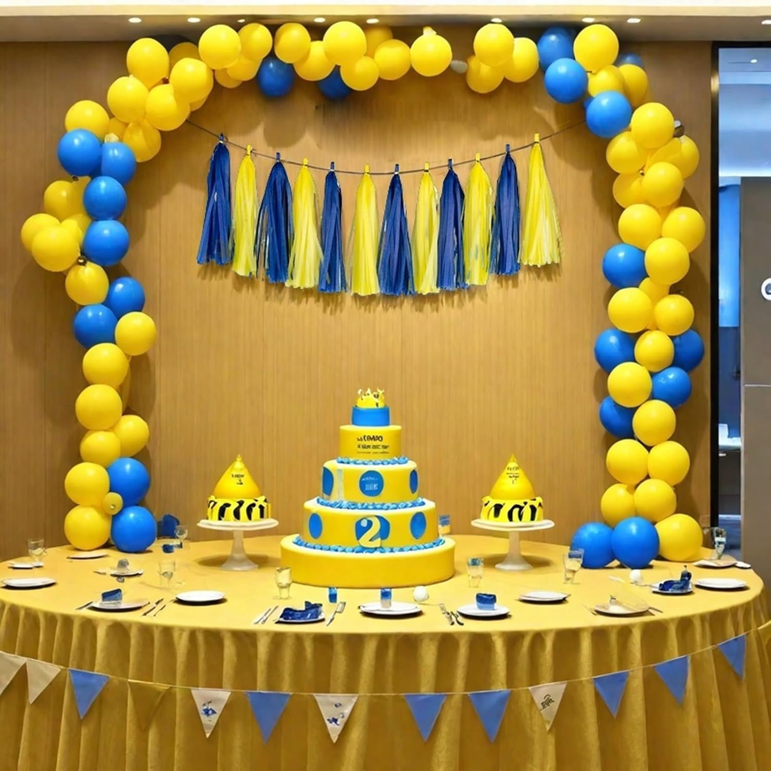 Aimto 20pcs Blue and Yellow Shiny Tassel Garland Banner Tissue Paper Tassels for Party Decorations