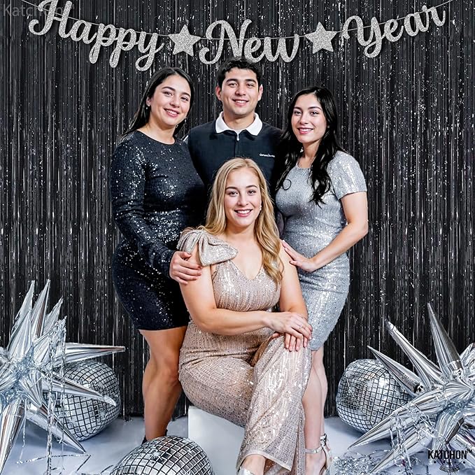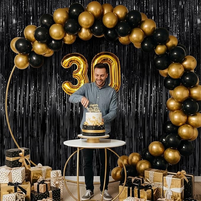 - REUSABLE | GLIMMERING AND STUNNING BACKDROP FOR PHOTO BOOTH – This Black Fringe Curtains Party Decorations set adds instant shine and visual impact to any celebration or photo booth setup. Crafted for durability and reuse, this black fringe curtain creates a bold, high-shine look that elevates your décor effortlessly. Use it as a black foil fringe curtain or black backdrop for party photos, birthdays, and themed events. It works beautifully as a black shimmer wall backdrop or black streamer backdrop. Style with black streamers, black fringe, and pair it with a black happy birthday banner.