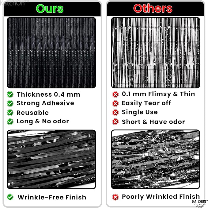 - ELEVATE YOUR EXPERIENCE – Customer delight remains our north star, and every material used in this black photo backdrop for black party decorations and red and black birthday decorations is Grade A. What you see is exactly what arrives at your doorstep. If satisfaction dips, we’re here with full support across black streamers party decorations, black door streamers, black sparkly backdrop, black streamer curtain, black shimmer wall backdrop, black tinsel curtain, black door streamers, black backdrop for party and black streamers party decorations.