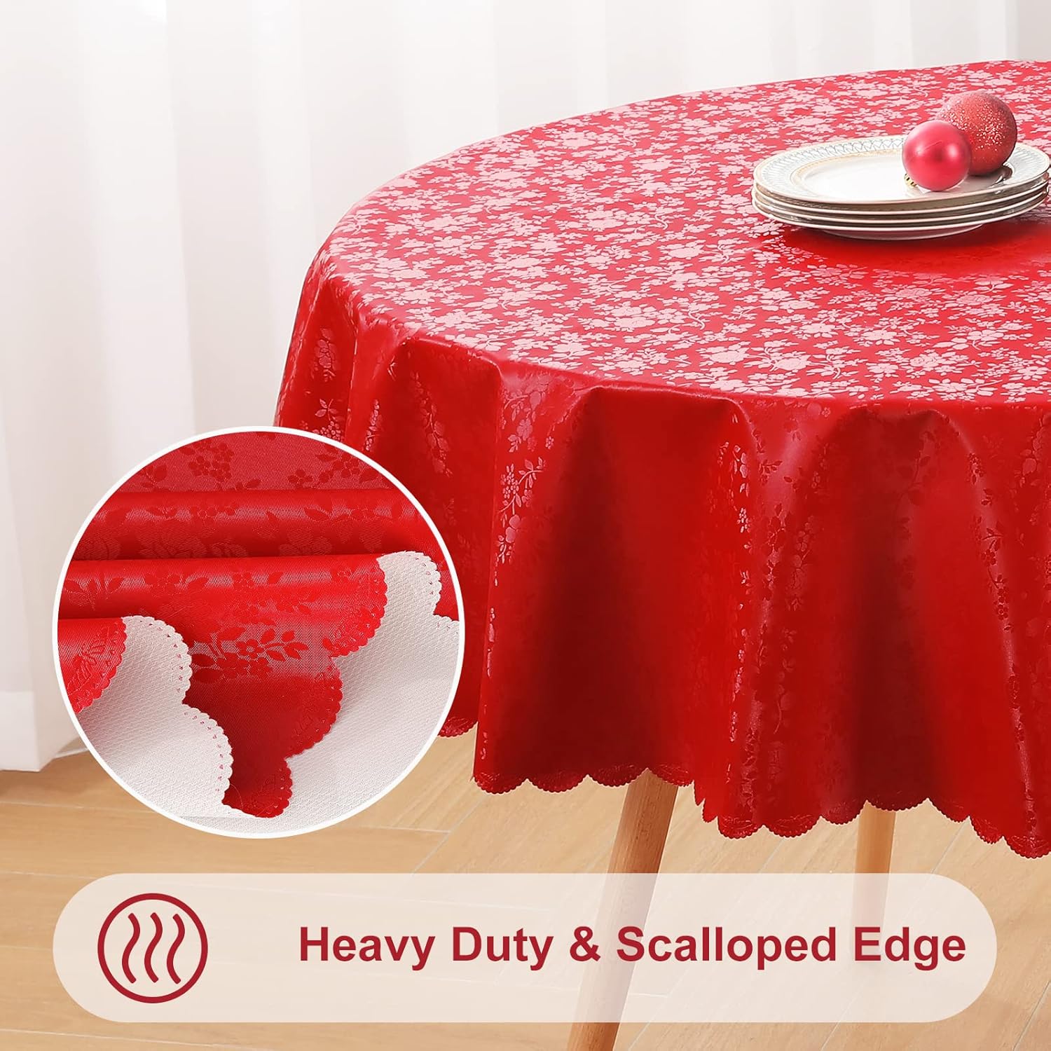 - [Elegant Vinyl Tablecloth] Featuring floral embossed tablecloth with pretty scalloped edges, nice warm tone and soft touch add an elegant touch to these tablecloths, they are suited for light up your fancy dinner.