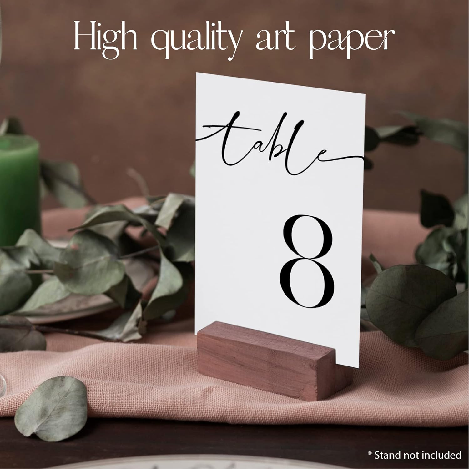 - {THE QUALITY}: This is pure quality table numbers wedding as they are printed on 130lbs heavyweight cards. To add to the sturdiness, these wedding numbers for tables are matte laminated for a smooth surface finish.