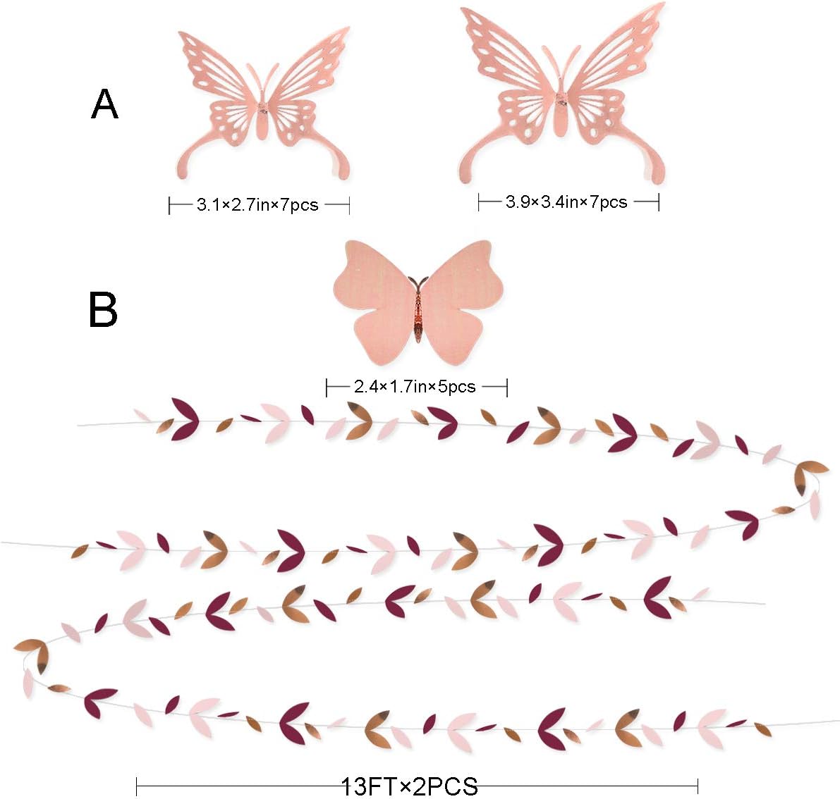- Unique Design - Decorative tissue paper lanterns with rose gold 3D butterfly decals stickers and rose gold burgundy pink leaf garlands,This design making your party decoration more vibrant and gorgeous,Imagine the look as they walk into your theme party to see the beautiful decorations that you so deliberately decided upon.