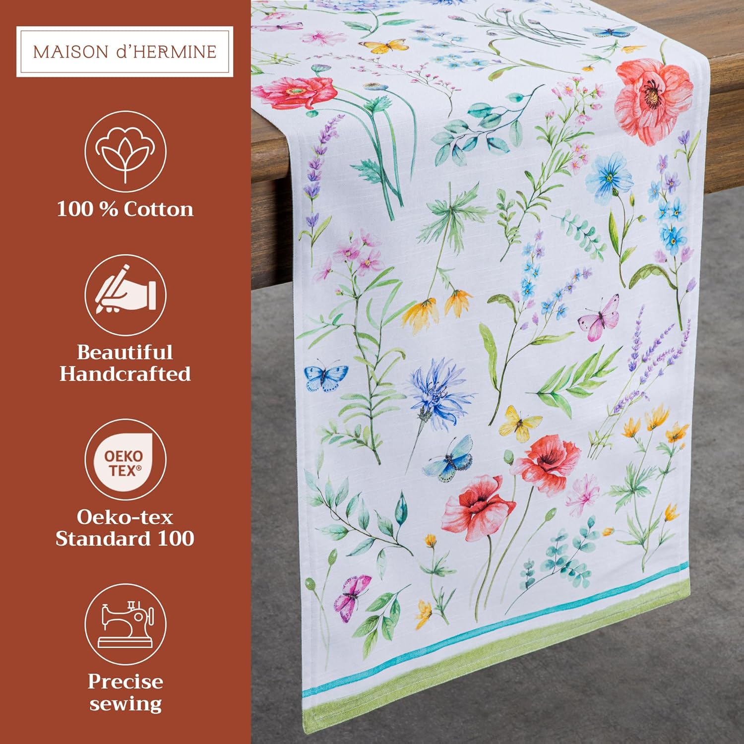 Maison d' Hermine Table Runner 100% Cotton Double Layer Table Runners 108 inches Long Decorative for Home Kitchen Dining Party Wedding Bridal Shower Spring Summer (Just Floral, 14.50" x 108")