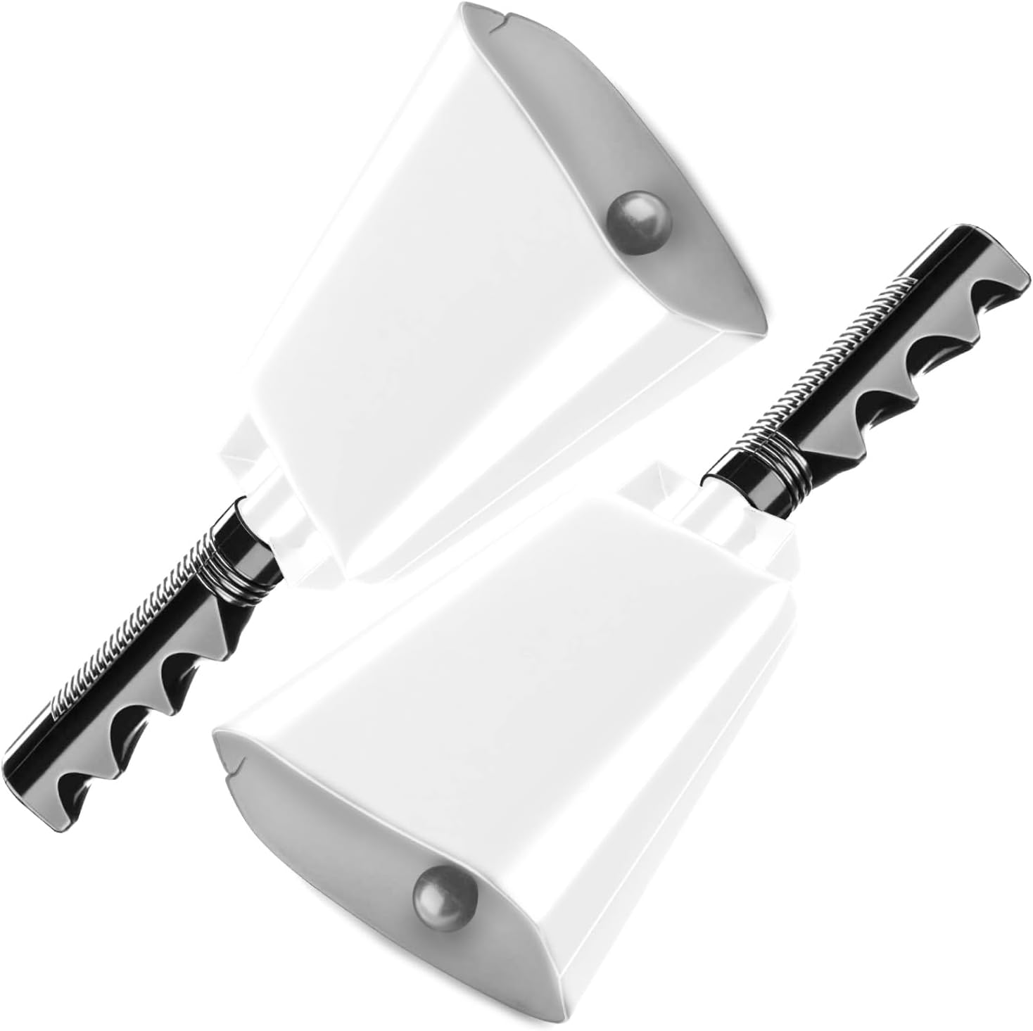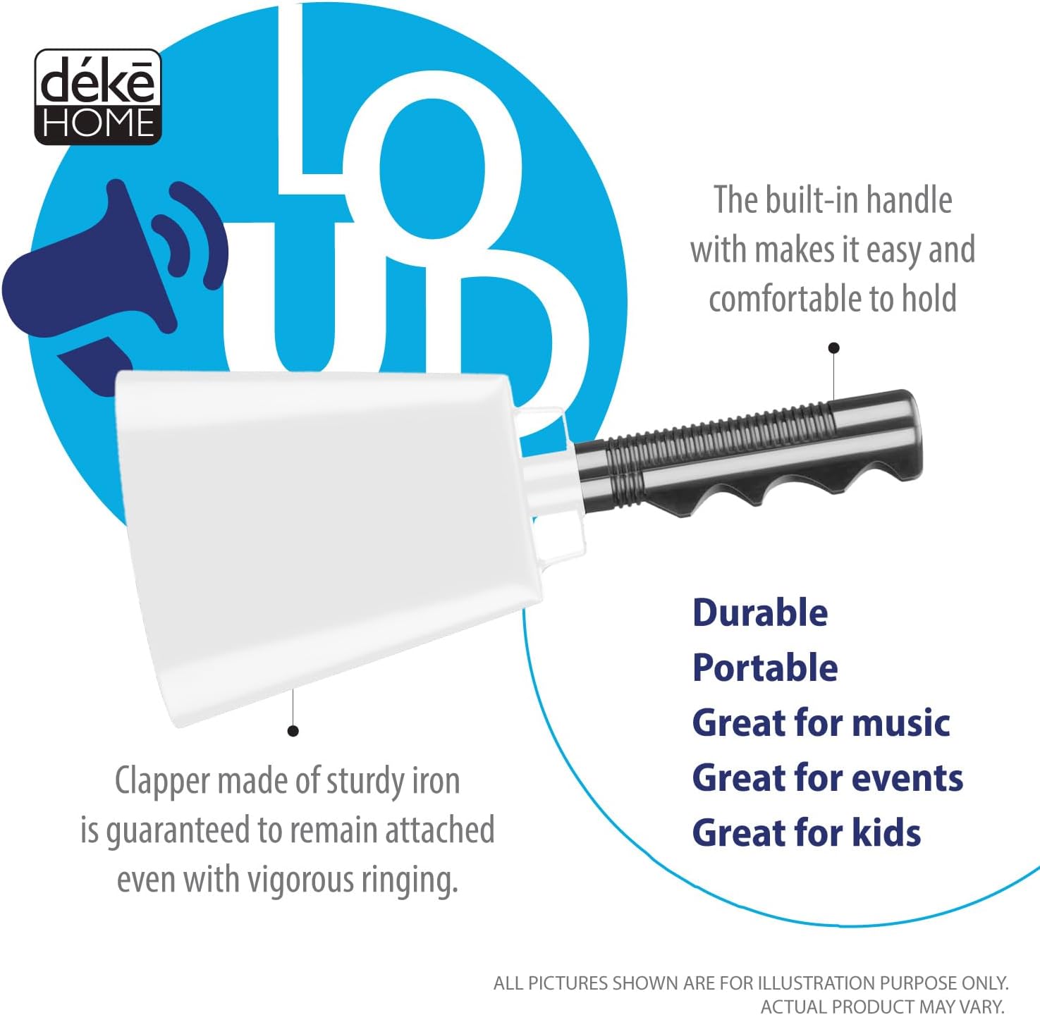 Deke Home - 2 Pack 10 Inch Steel Cowbells with Handle, Loud Noise Makers for Football, Sports, Parties, Competitions, School Spirit & Safety, Large Hand Bell for Cheering & Percussion Instrument