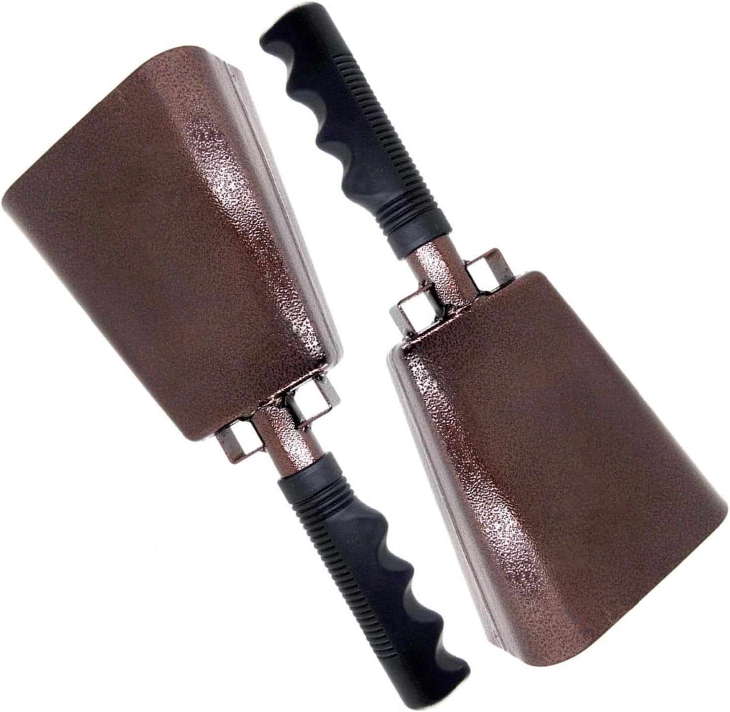 Deke Home - 2 Pack 10 Inch Steel Cowbells with Handle, Loud Noise Makers for Football, Sports, Parties, Competitions, School Spirit & Safety, Large Hand Bell for Cheering & Percussion Instrument