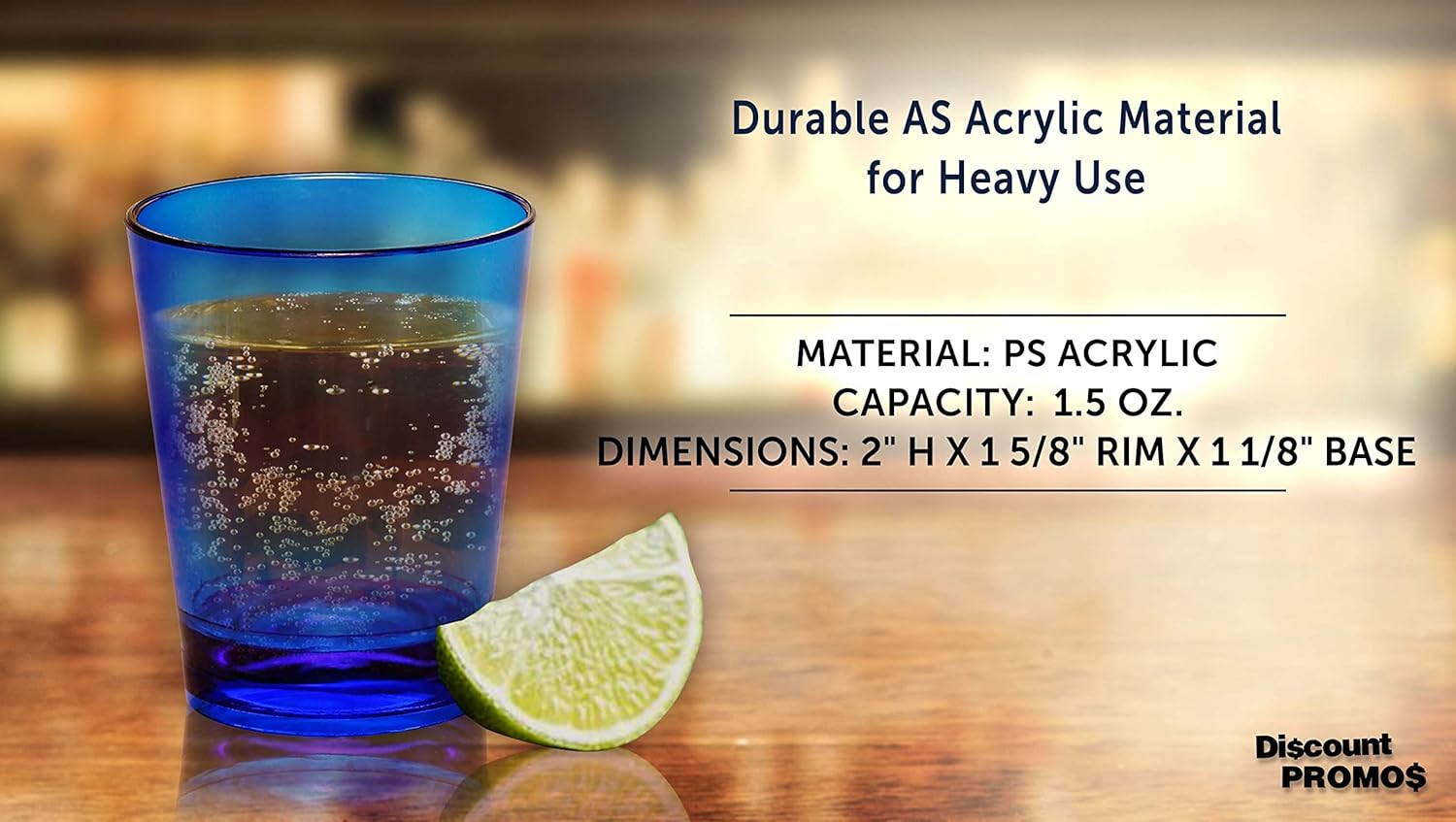 DISCOUNT PROMOS Translucent Plastic Shot Glasses 1.5 oz. Set of 10, Bulk Pack - Acrylic, Great for Wedding, Party, Birthday, Gifts - Blue