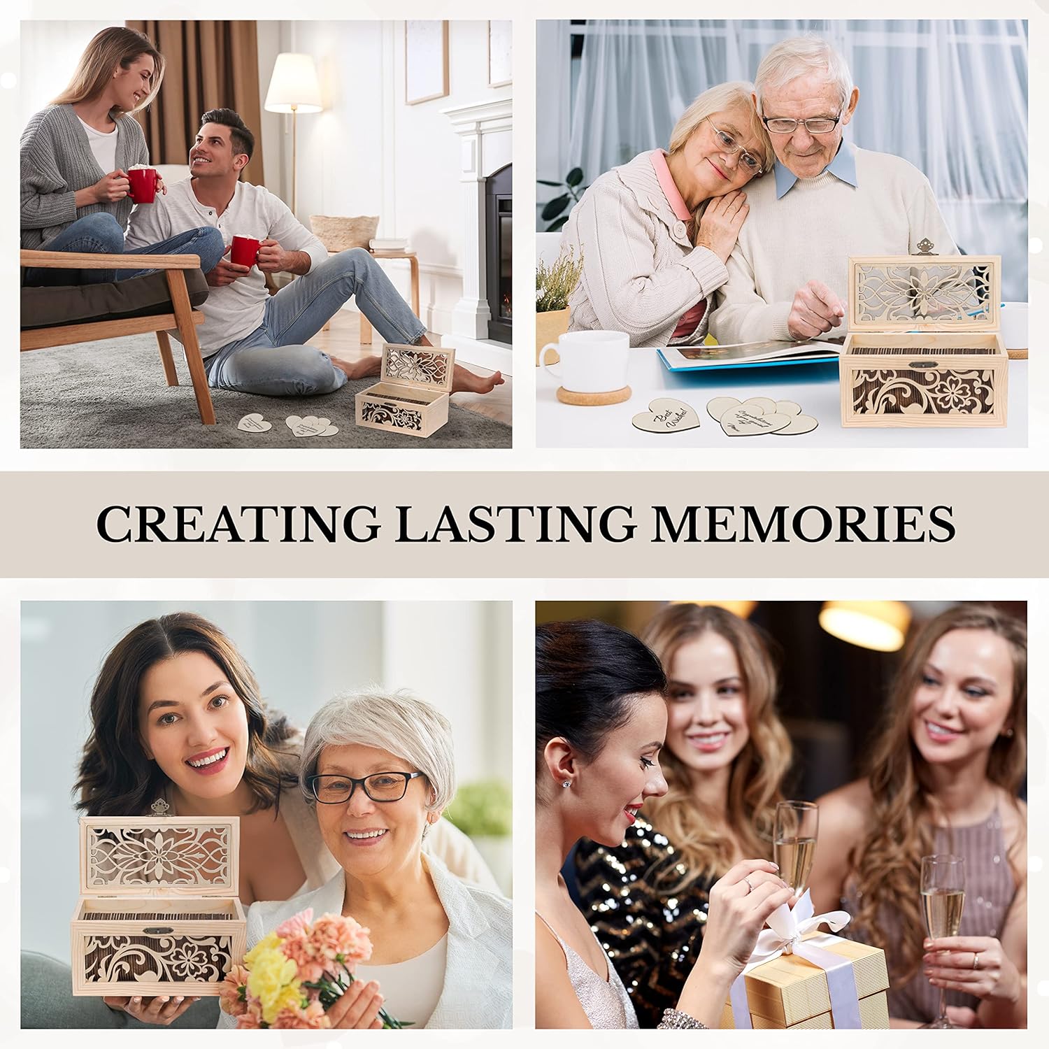 - ๐ธ Hand Made High Quality - Hand crafted in Vietnam. Solid Pine Wood Box 8" Length X 4" Width X 4" Depth. 62 X 3.1" large laser cut hearts for your guests to sign. Display sign: 3.5" heart + 2" block stand. A lifetime of memories.