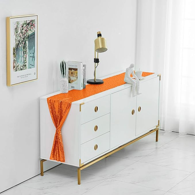 - Size: The 12" x 72" orange sequin table runner is suitable for tables that can accommodate 4-6 people