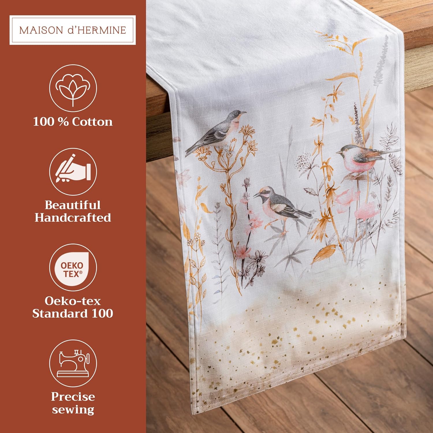Maison d' Hermine Table runner 100% Cotton Double Layer Table Runners 72 inches long Decorative for Home Kitchen Dining Party Wedding Bridal Shower Spring Summer (Meadow Florals - Beige, 14.50" x 72")