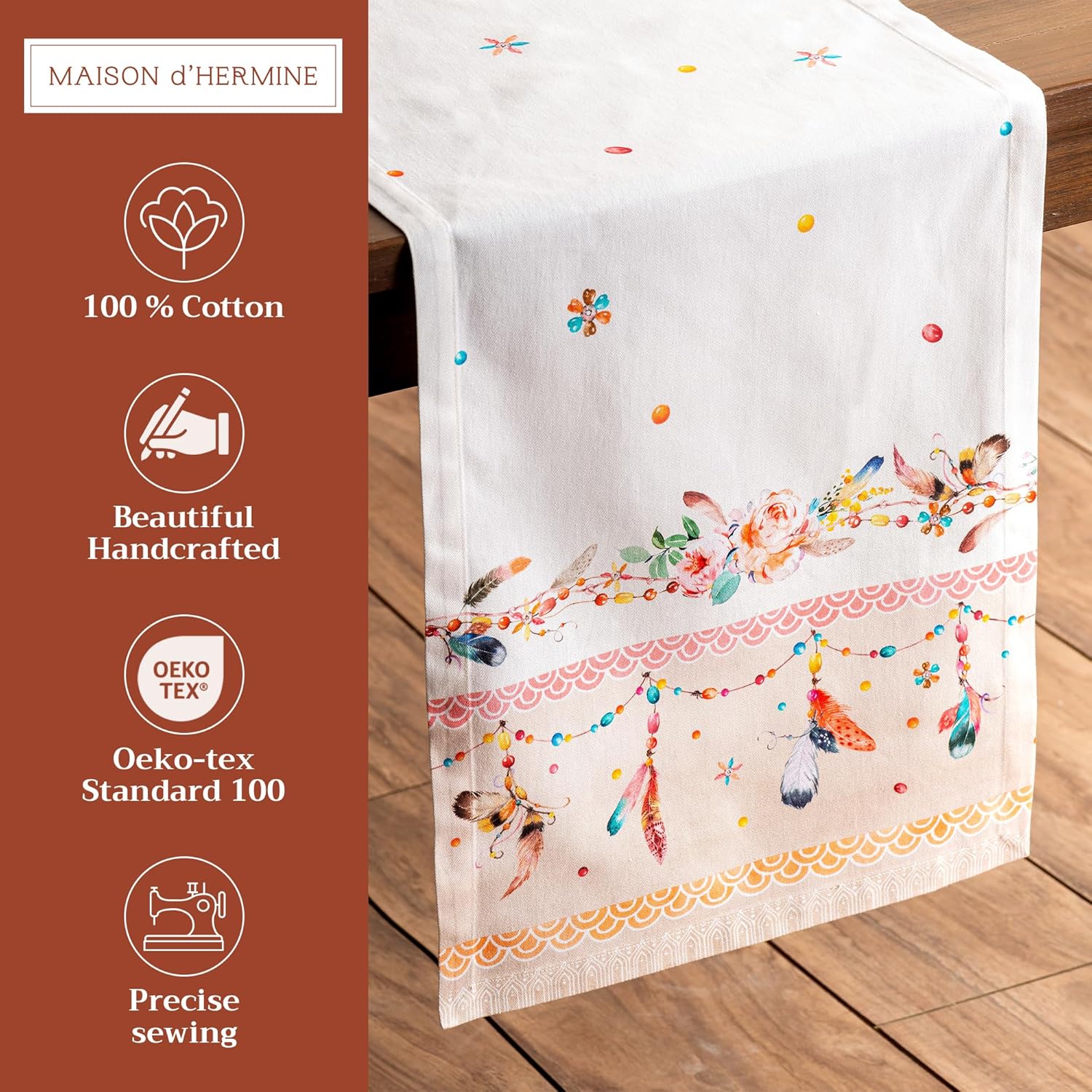 - Easy care & maintenance: Crafted from 100% cotton, this table runner is machine washable with like colors, do not bleach. Tumble dry on low and warm iron if needed. Durable and easy to maintain for everyday or seasonal use.