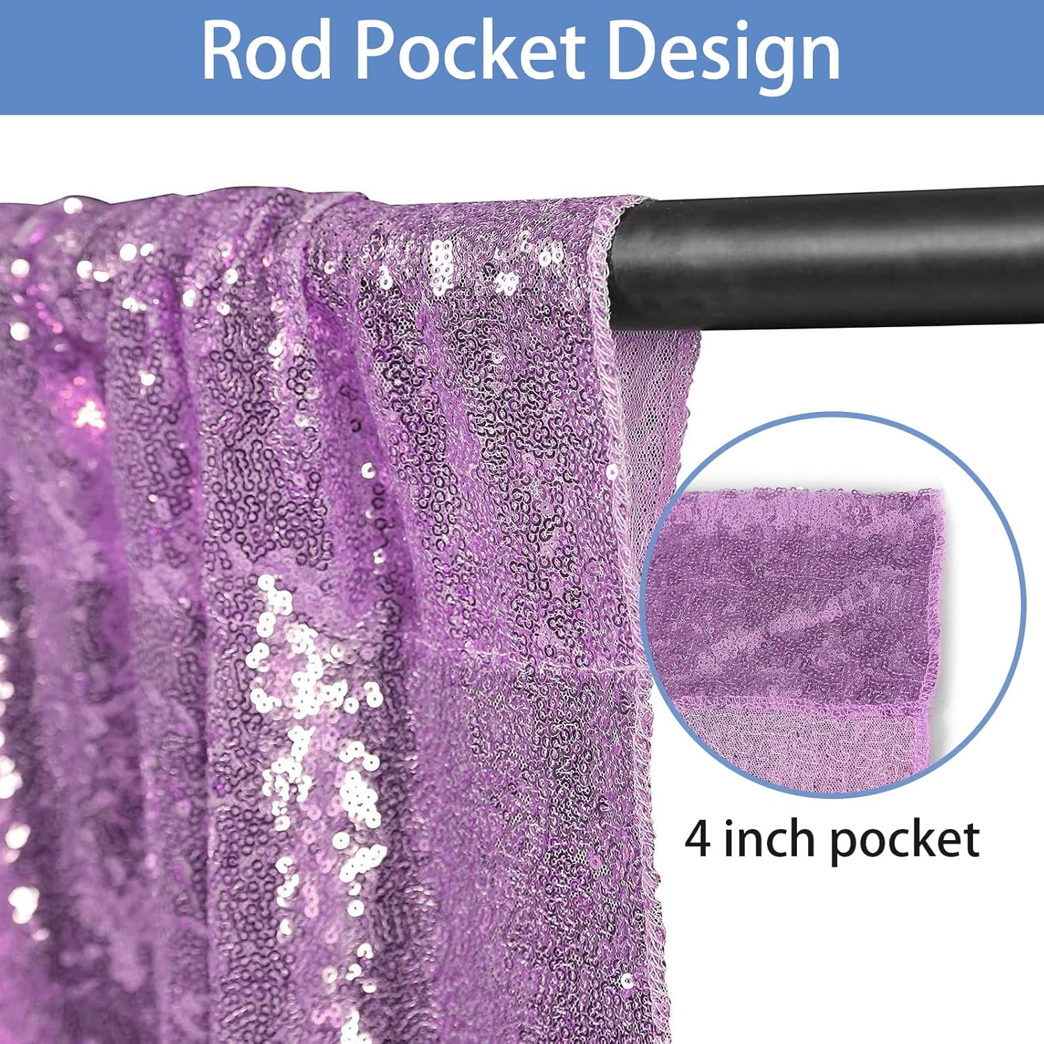 Hahuho Lavender Sequin Backdrop Curtain, 4PCS 2FTx8FT Glitter Backdrop Curtain for Parties, Christmas, Wedding, Party Decoration(4 Panels, 2FT x 8FT, Lavender