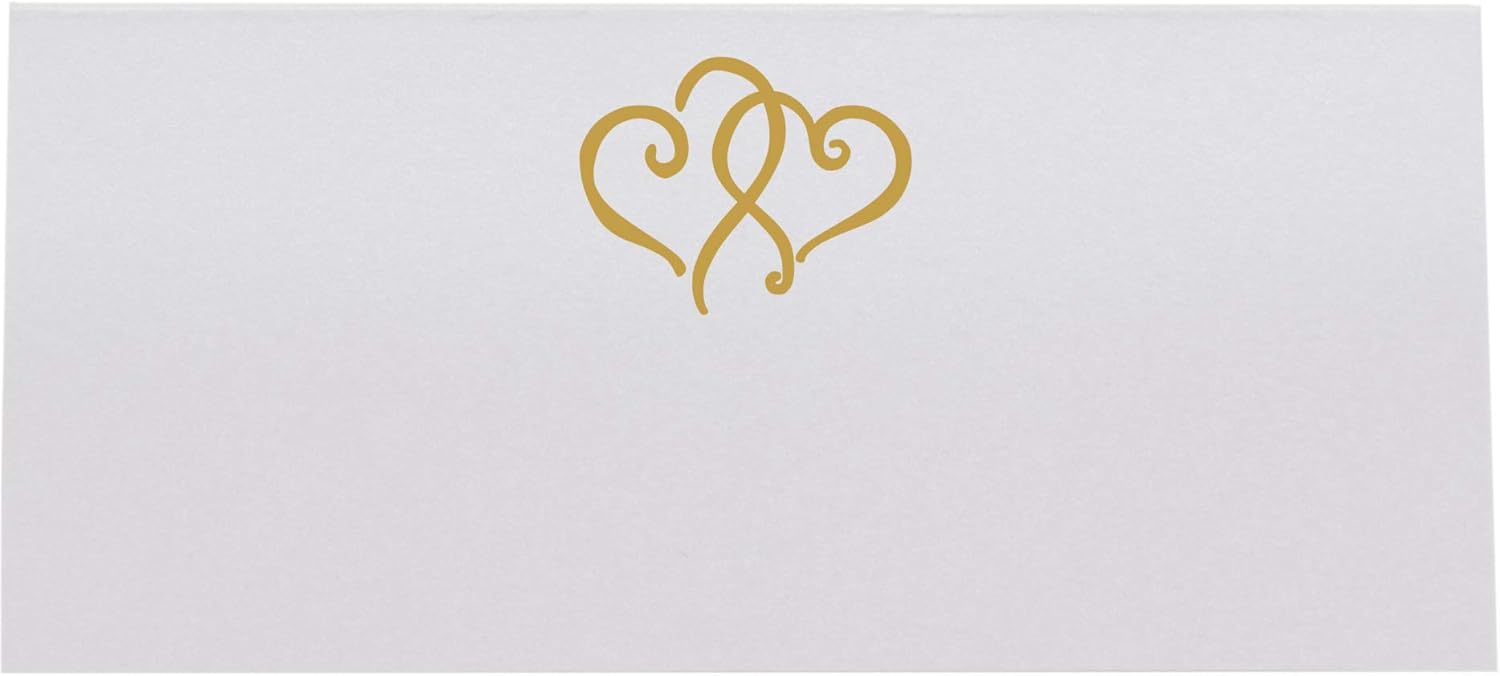 Linked Hearts Place Cards, Gold (Choose Color), Set of 25, Pre-cut and Scored - Wedding, Party, Dinner, and Special Events - Made in the USA