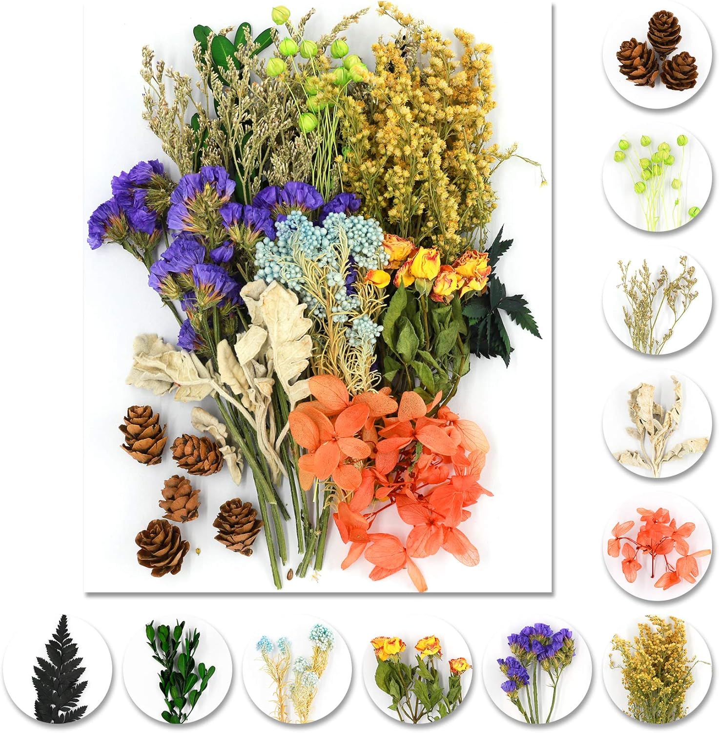 - Dried Pressed Flowers: Very Colorful real dried flower, shapes and colors of flowers well preserved. Can bring you a wonderful experience. Experience nature and purify your soul. Love nature, a gift from nature!