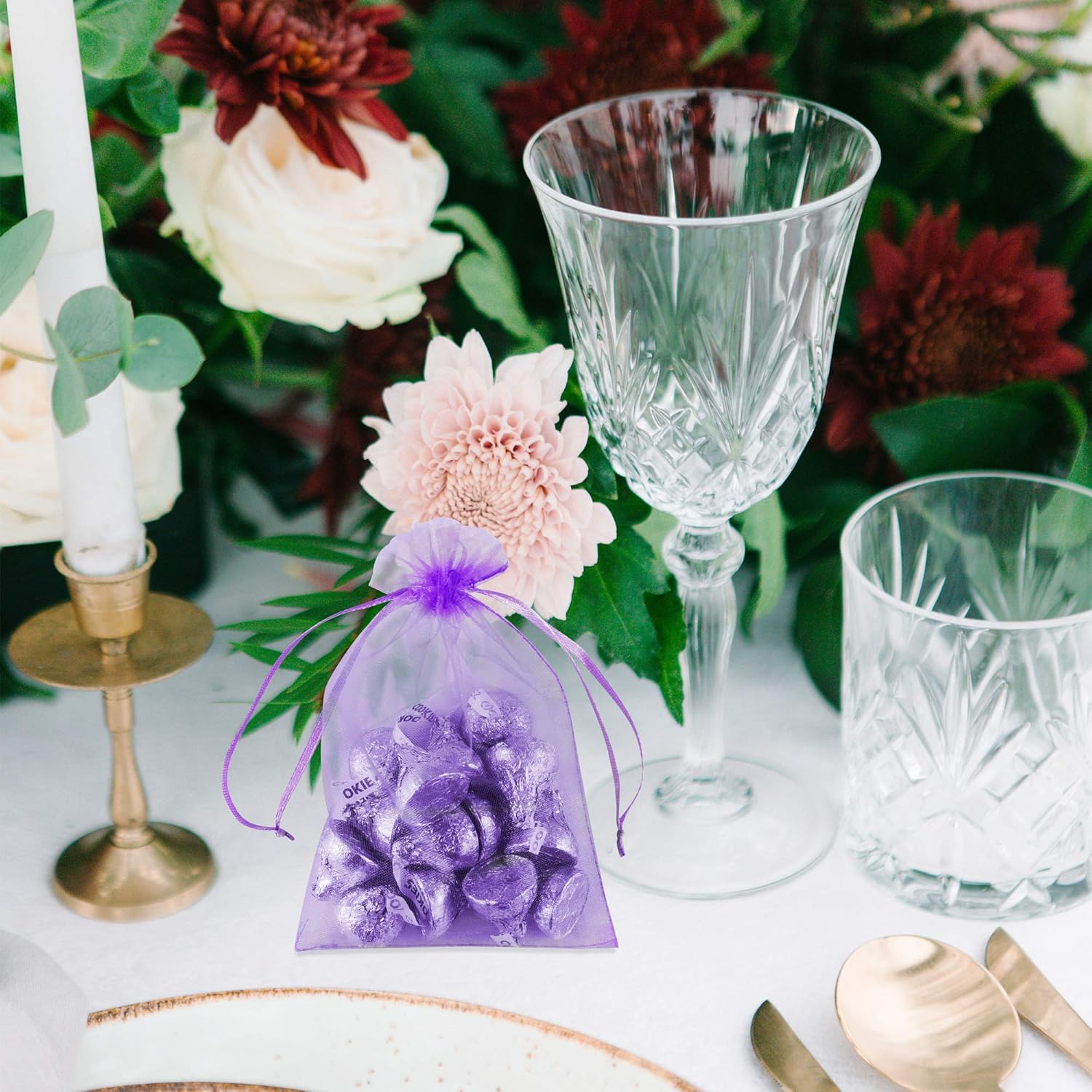 Super Z Outlet 100 Pack 5x7 Inch Mini Sheer Drawstring Organza Transparent Bags Jewelry Sack Pouches for Wedding, Party Decorations, Arts & Crafts Gifts (Purple)