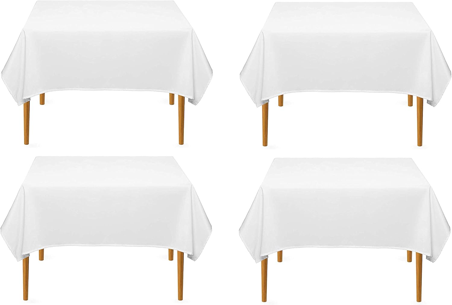 Pomp Pure White 70" x 70" Poplin Polyester Tablecloth (4 Pack) | Wrinkle + Stain Resistant Easy Care Premium Fabric | Fits Square or Round Table