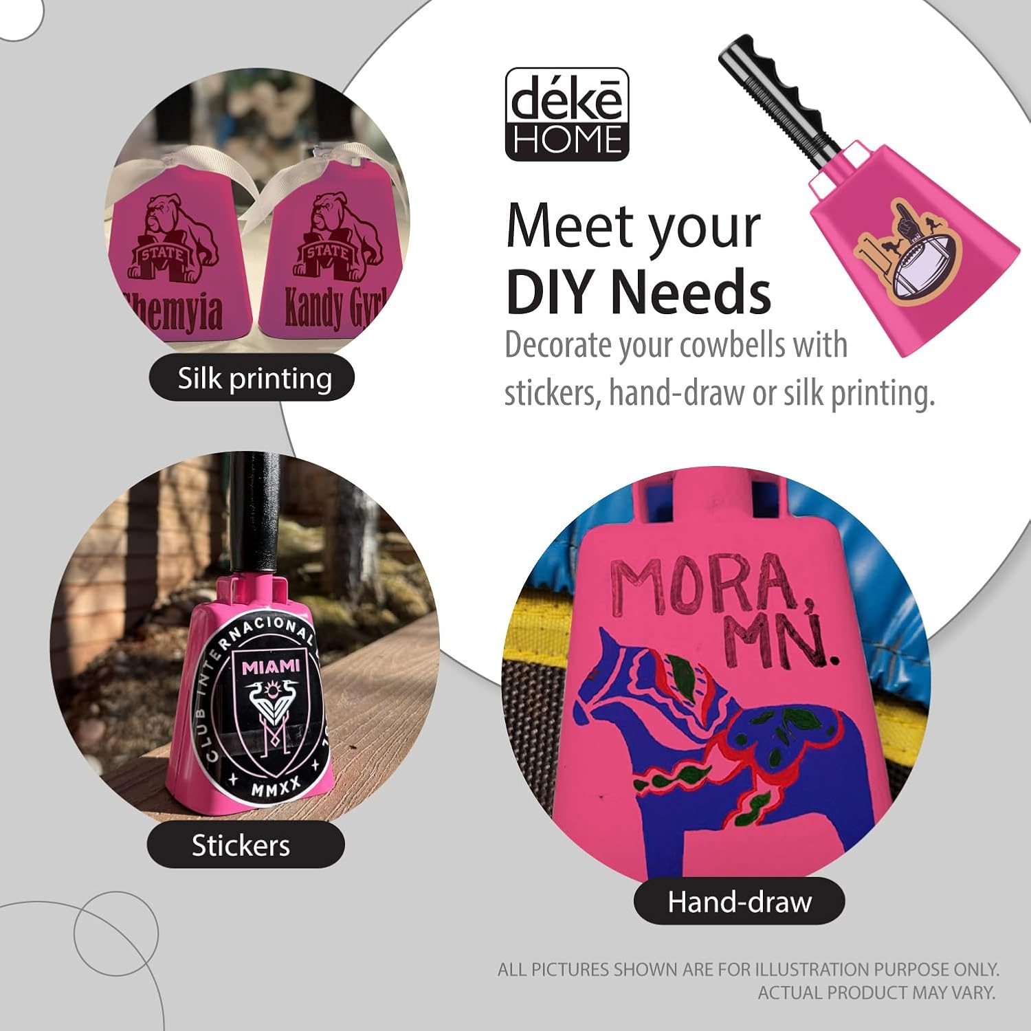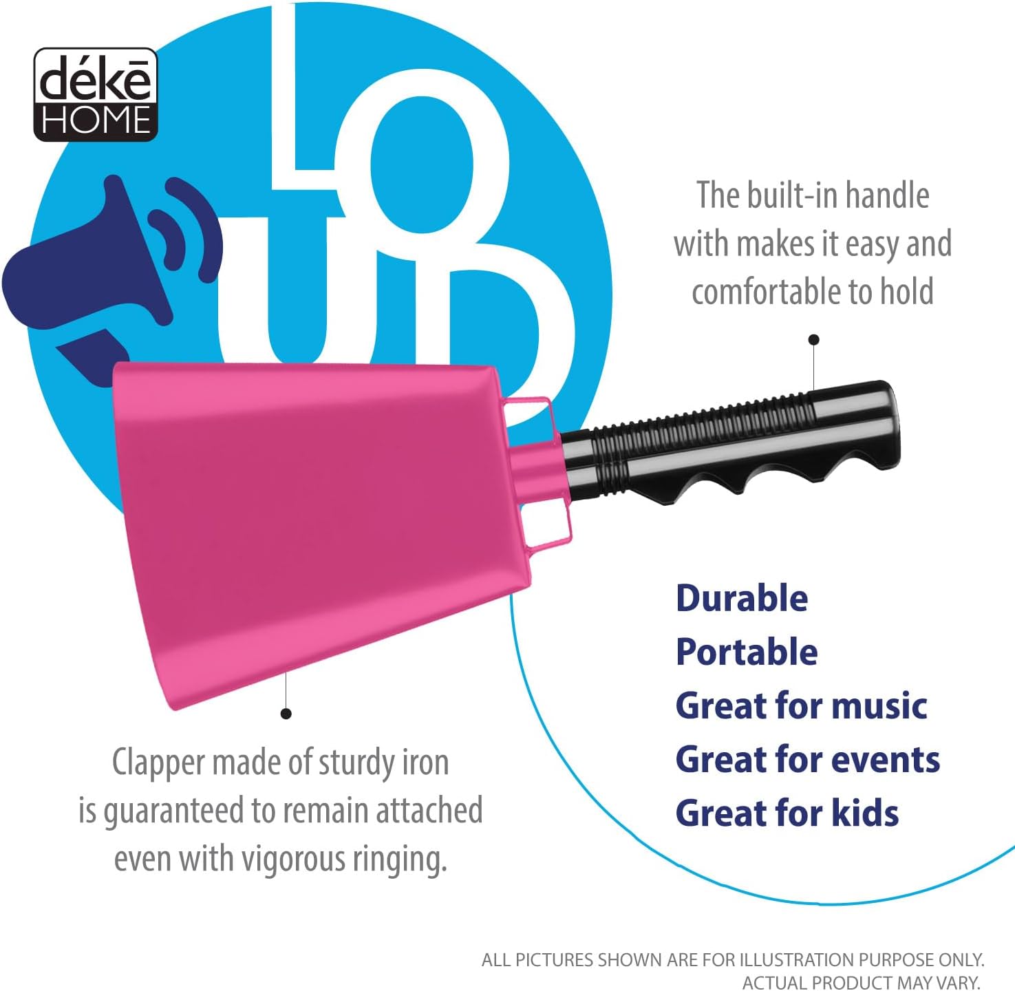 Deke Home - 2 Pack 10 Inch Steel Cowbells with Handle, Loud Noise Makers for Football, Sports, Parties, Competitions, School Spirit & Safety, Large Hand Bell for Cheering & Percussion Instrument