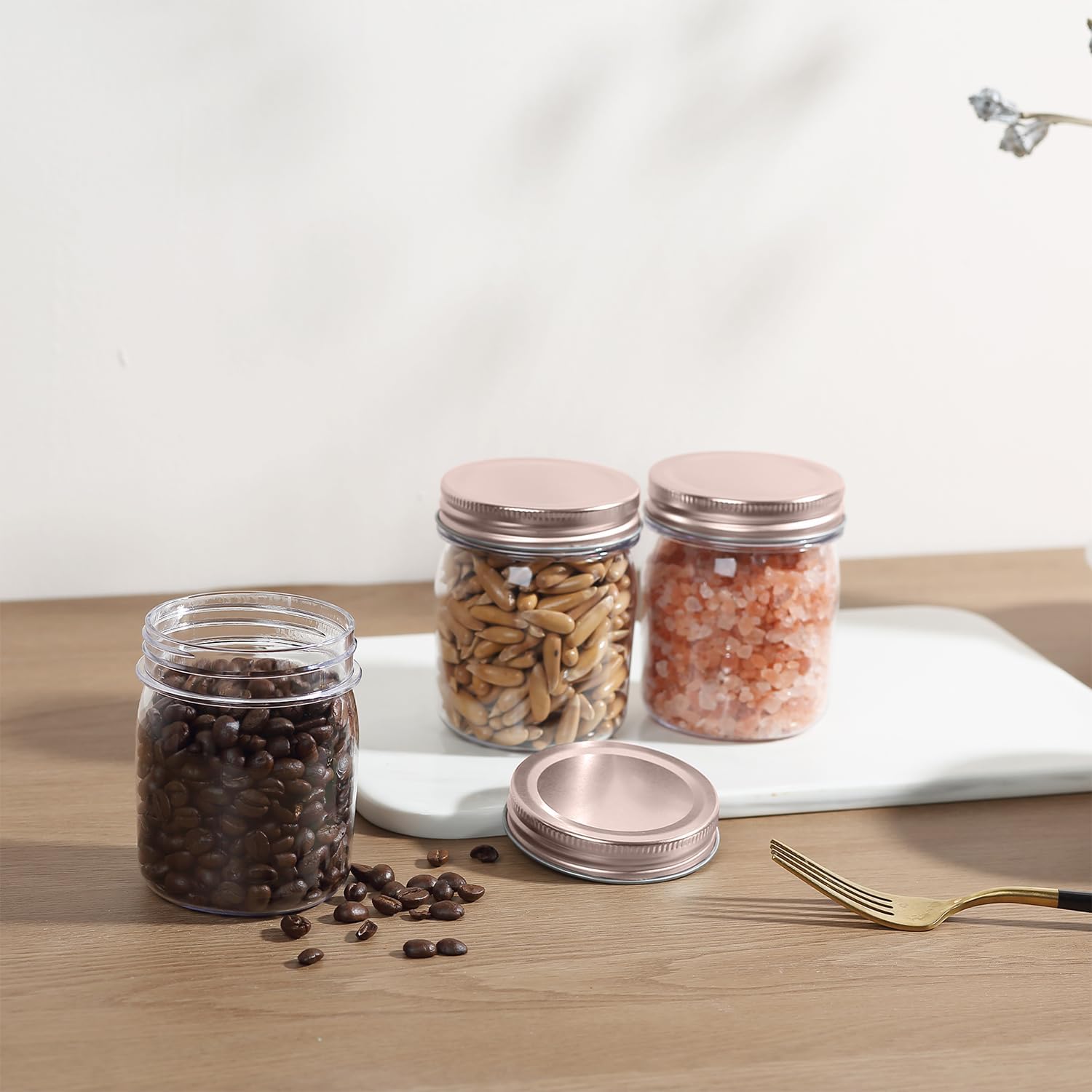 novelinks 8 oz Clear Plastic Jars with Screw-On Lids - BPA-Free Refillable Storage Containers for Slime, Spices, Crafts, Kitchen & Home Organization (32 Pack,Rose Gold)