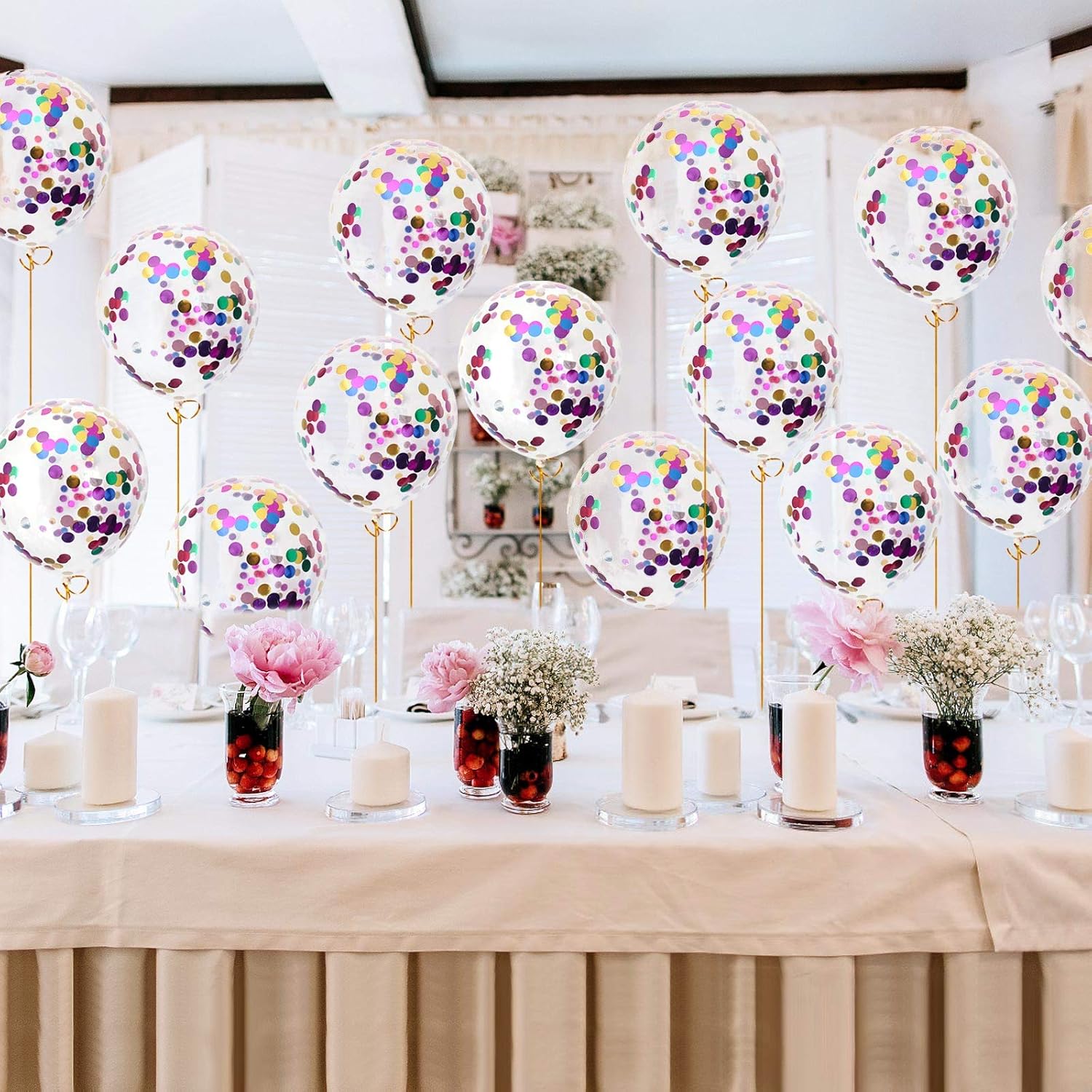 • 40pcs 12-inch Transparent colorful Confetti balloons, make your party impressively the talk of the town.