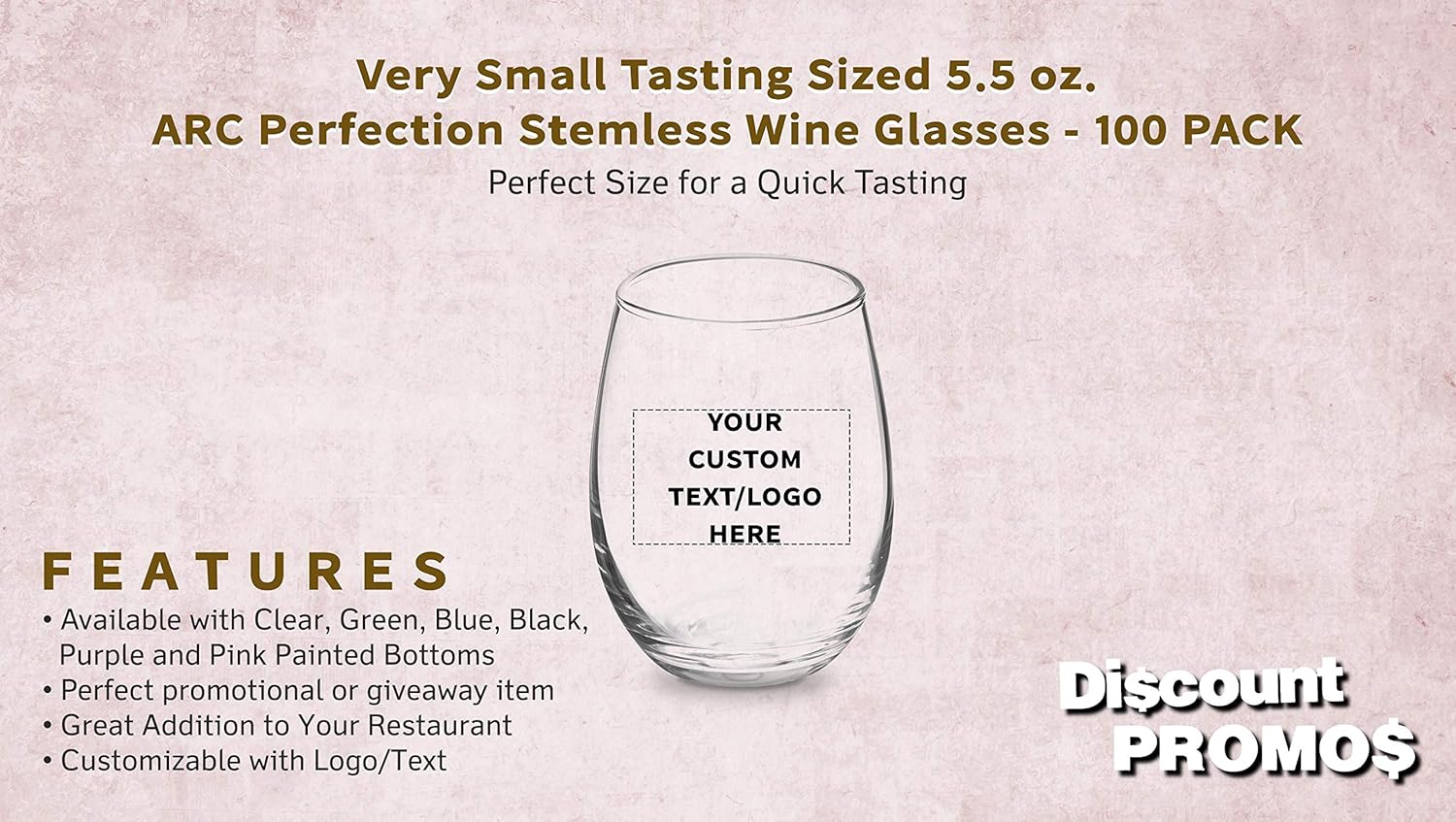 Custom Stemless Wine Glasses by ARC 5.5 oz. Set of 100, Personalized Bulk Pack - Perfect for Hotel, Bar, Restaurant or Lounge - Clear