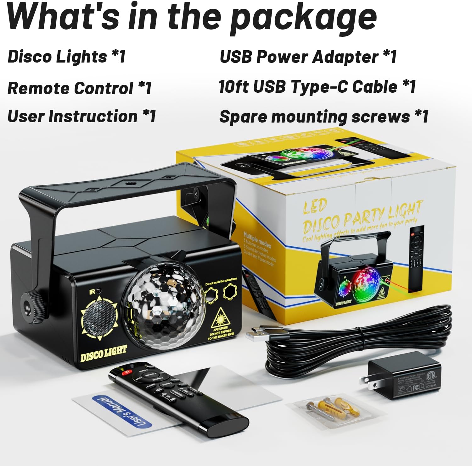 Party Lights, DJ Disco Light Disco Ball Light Sound Activated Strobe Stage Lights for Parties Birthday Christmas Gift Wedding Karaoke KTV Bar Club Pub Dance Home Room Halloween Decorations
