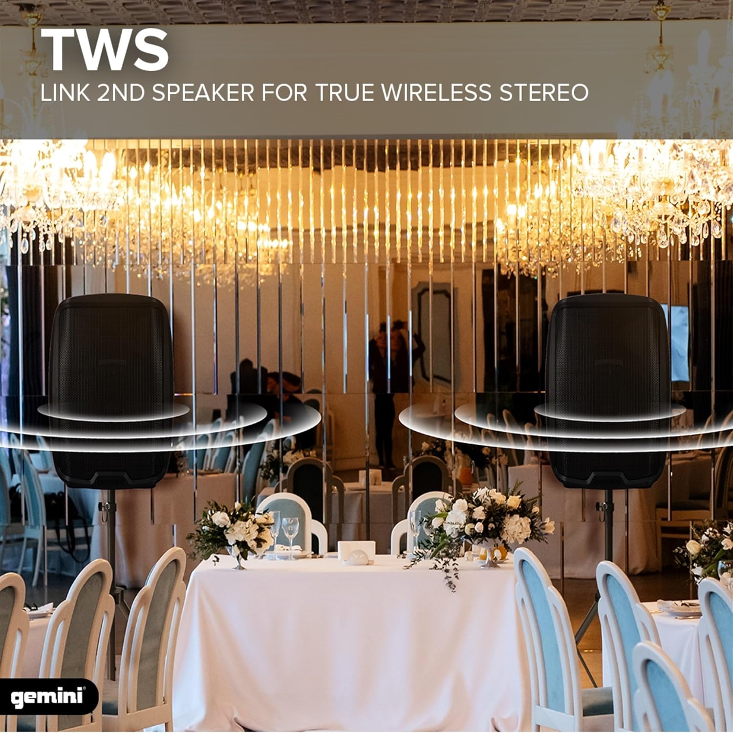 - WIRELESS TWS PAIRING FOR EXPANDED SETUPS: Eliminate cables and expand your coverage instantly with True Wireless Stereo link. Pair with another unit to create a stereo-powered speaker system that works seamlessly for events, performances, and portable DJ setups.