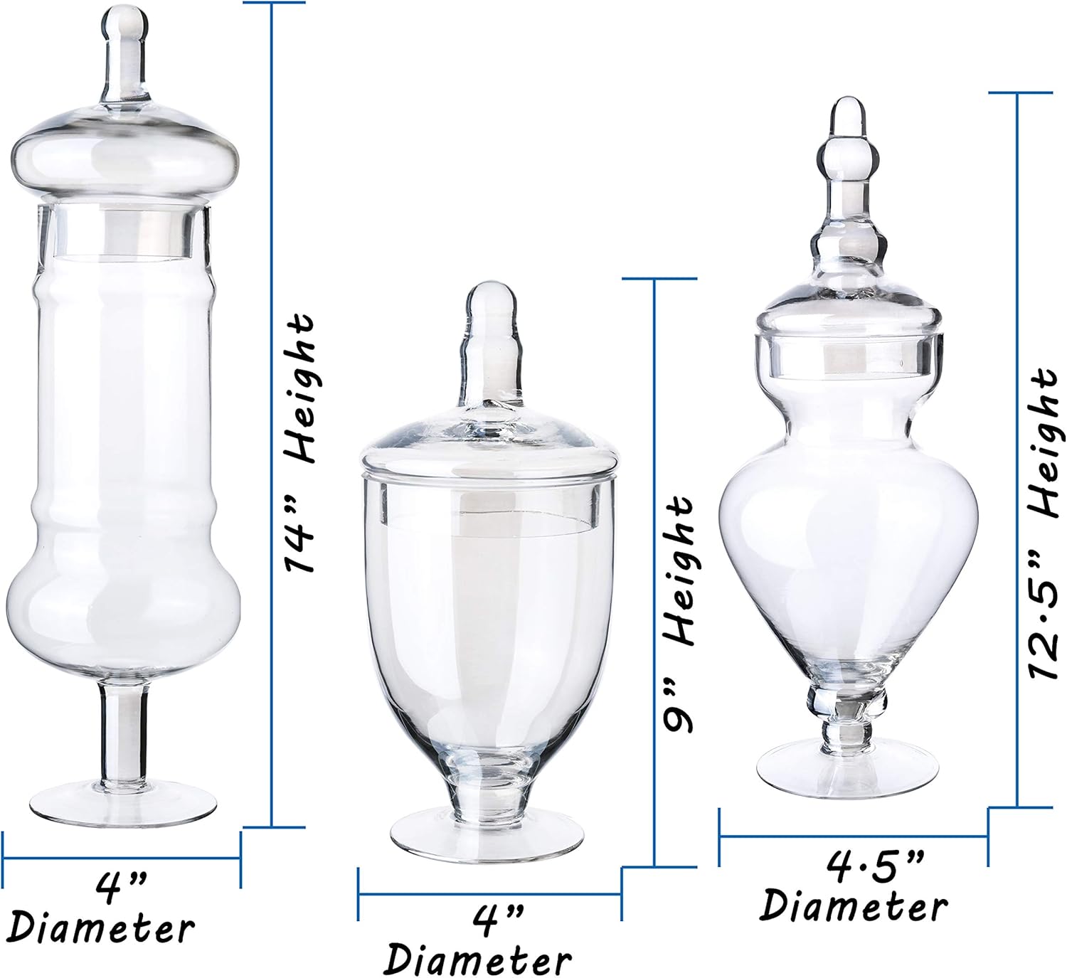 - IDEAL GIFT OPTION: The apothecary candy jars set are the perfect way to add festive holiday cheer to your home, for Wedding, Birthday Parties, Halloween, Thanksgiving, Christmas, New Year. The elegant shape and lightweight design is guaranteed to impress your guest.
