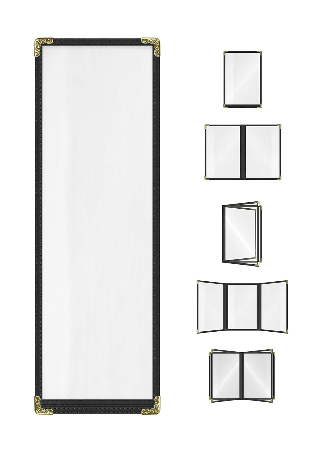 - Elegant Slim Design: Measuring 4.25" x 14", these menu covers are ideal for sleek and elongated menu presentations, perfect for drink menus, wine lists, or dessert options. The slim profile adds a touch of sophistication while saving table space.
