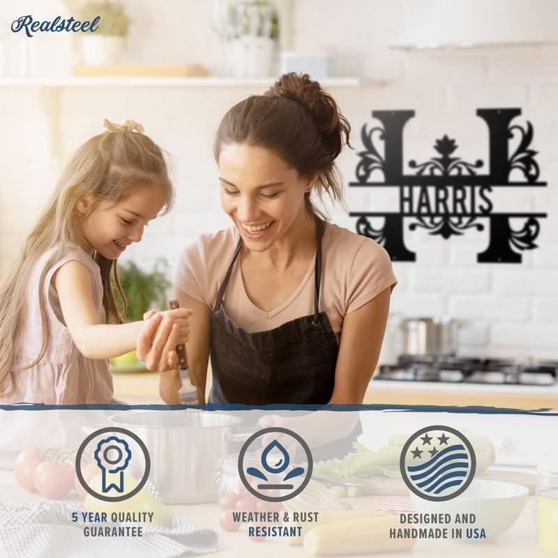 RealSteel Metal Split Letter Monogram โ Personalized Last Name Sign for Home & Outdoor Dรฉcor โ Custom Metal Wall Art โ Family Name Sign, Welcome Sign