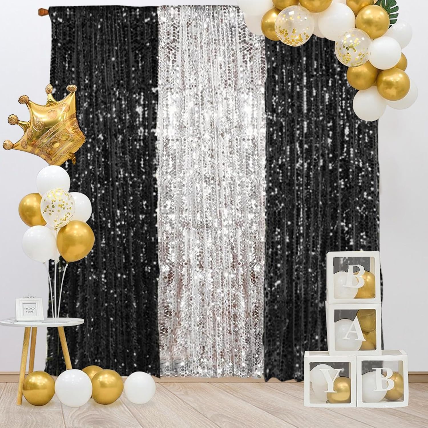 - Each order is for 2 (two) Black 4.5FT wide by 9FT height payette sequin curtains.