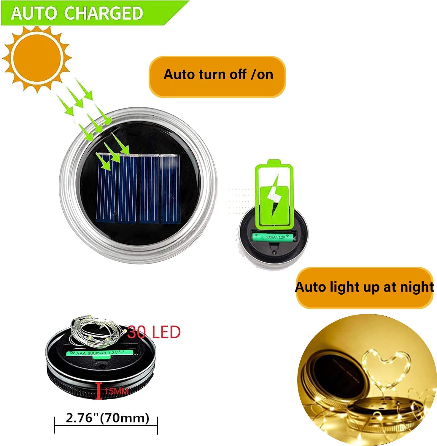 - Solar Powered: Fits regular mason jars, no jar included. Solar panel charges during the day for 8-12 hours of nighttime use.