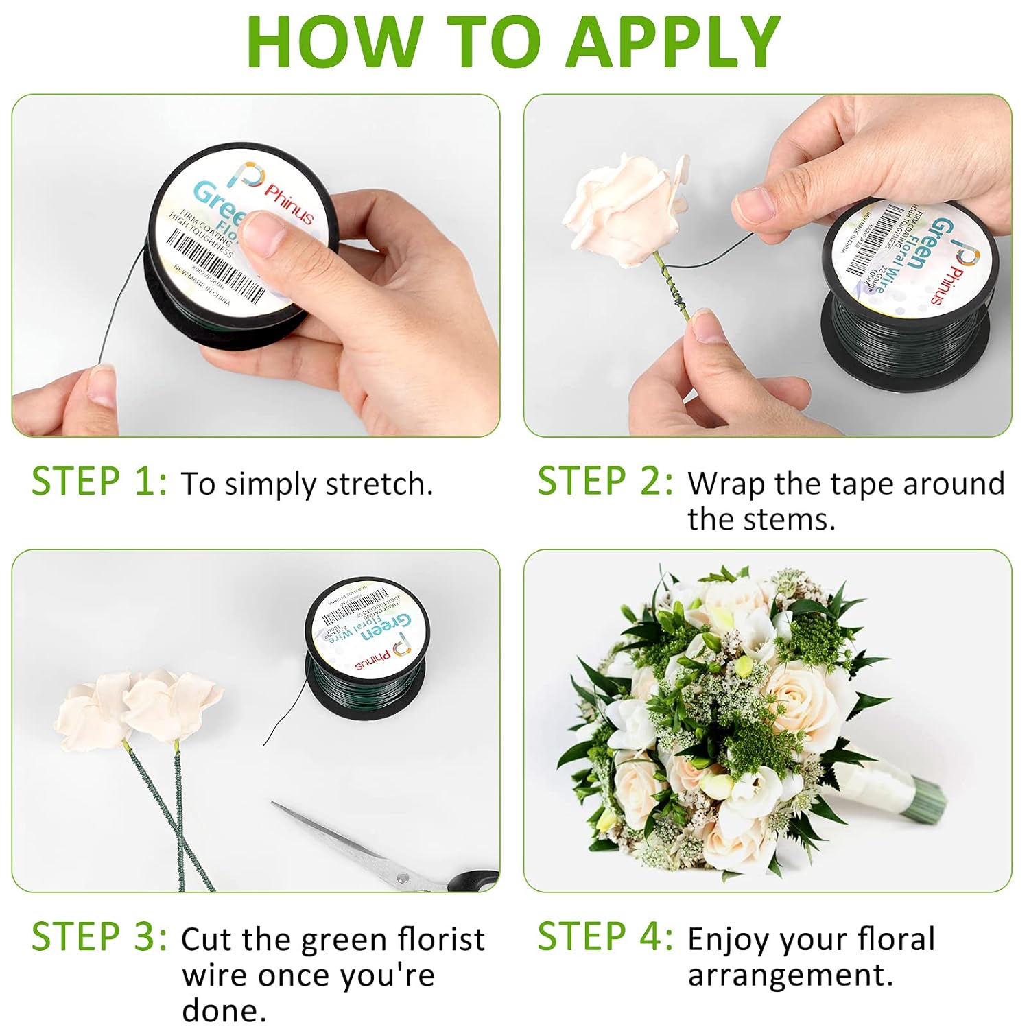- FLEXIBLE: Thin and strong, the green florist wire does not break when bent 180 degrees, and can be easily wound around even the most complex stems, easy to cut and use when arranging bouquets.