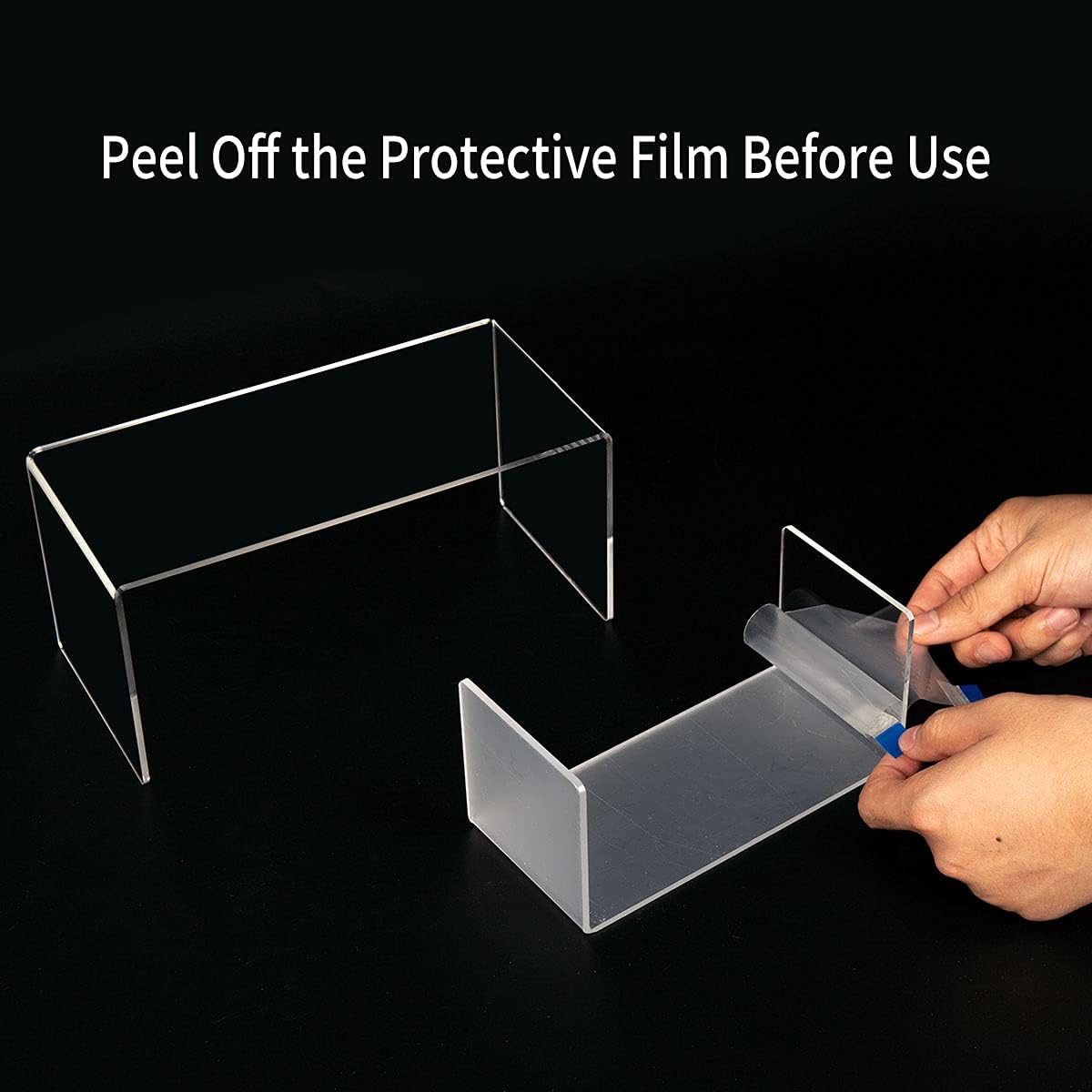 - *NOTE- Each clear cube riser stand come with a protective film on both sides for better protection to prevent the surfaces from scratching. Once peeling the film off, you can get the crystal transparent acrylic riser sets.*