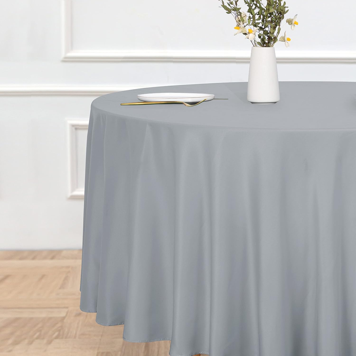 sancua Round Tablecloth - 120 Inch - Water Resistant Spill Proof Washable Polyester Table Cloth Decorative Fabric Table Cover for Dining Tables, Buffet Parties and Camping, Silver Grey