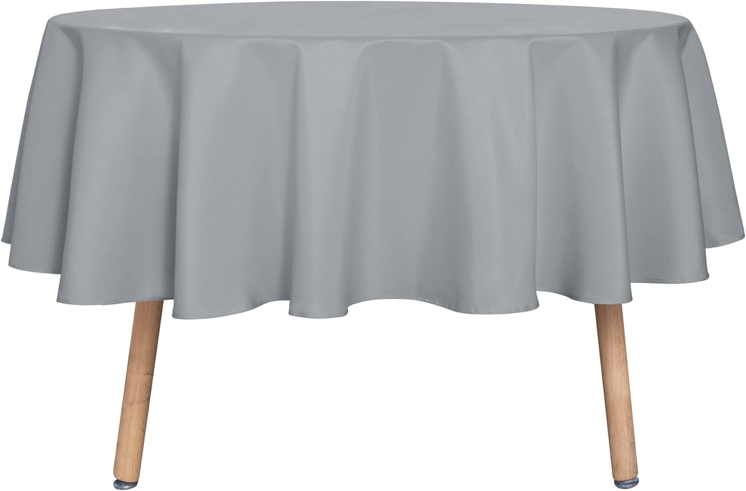 sancua Round Tablecloth - 60 Inch - Water Resistant Spill Proof Washable Polyester Table Cloth Decorative Fabric Table Cover for Dining Tables, Buffet Parties and Camping, Silver Grey