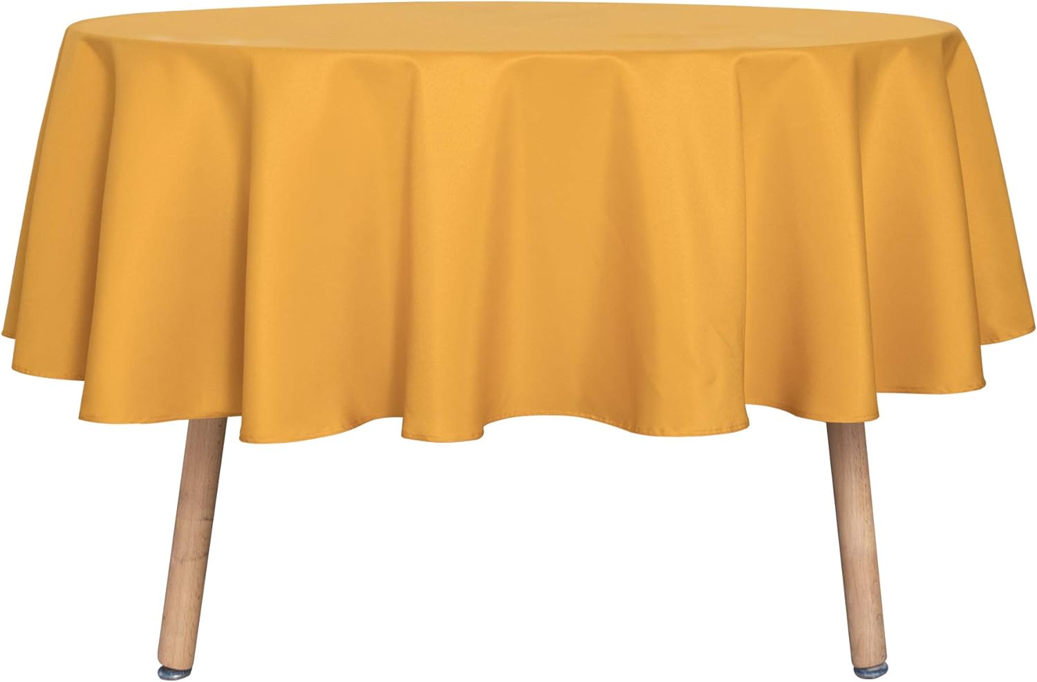 sancua Round Tablecloth - 80 Inch - Water Resistant Spill Proof Washable Polyester Table Cloth Decorative Fabric Table Cover for Dining Tables, Buffet Parties and Camping, Gold