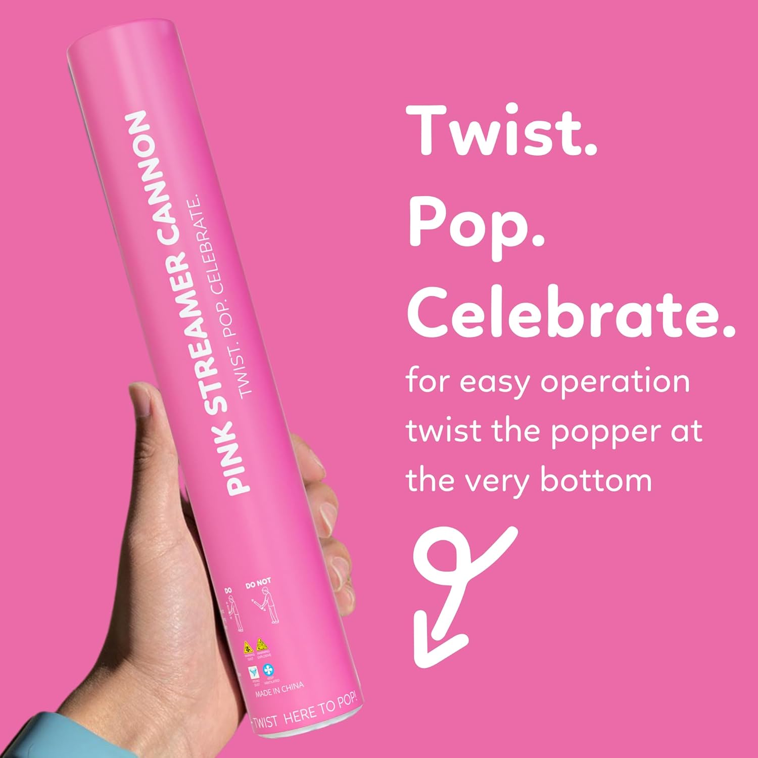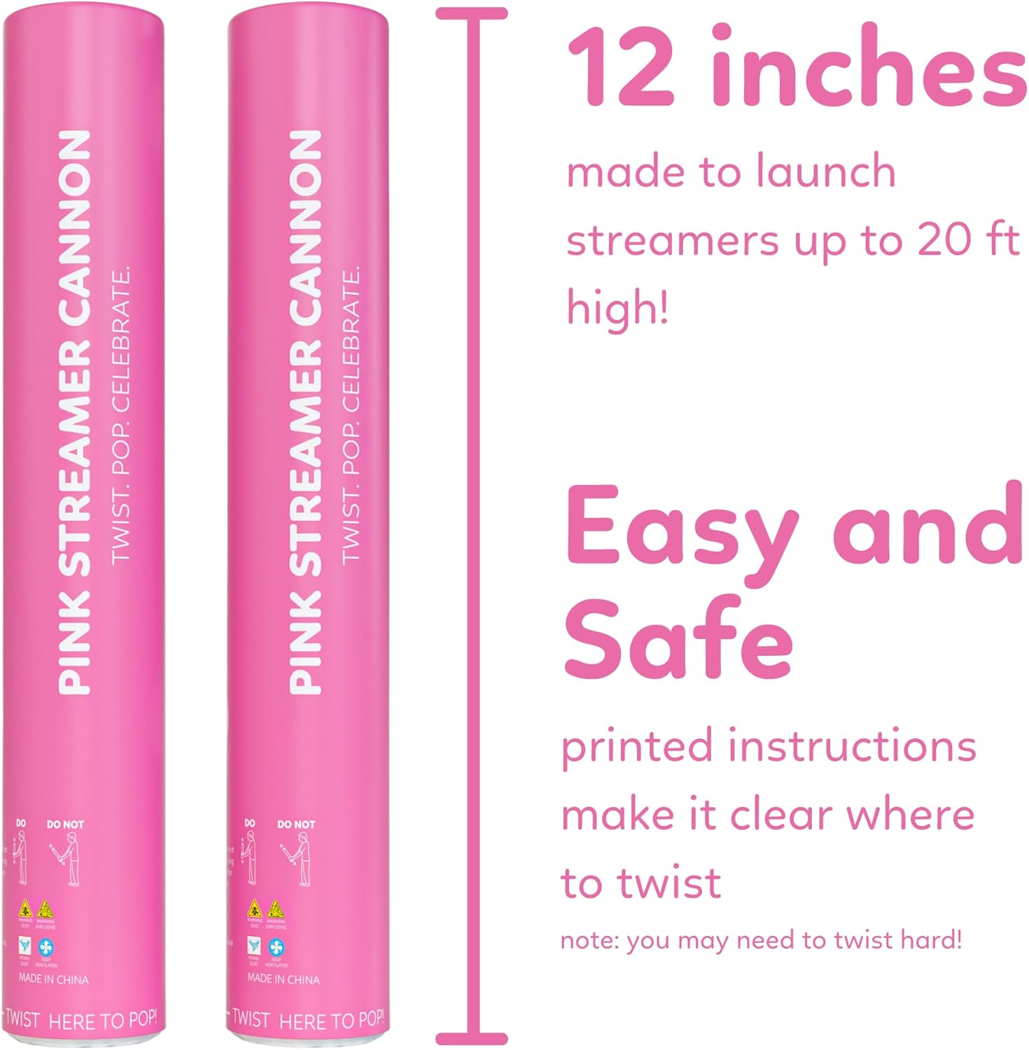 Pink Streamer Cannon Poppers | 2 Pack | Biodegradable Pink Streamers | TUR Party Supplies | Up to 25ft | Giant (12โ) | Party Poppers for Graduation, Birthdays, and Bachelorette & Princess Parties