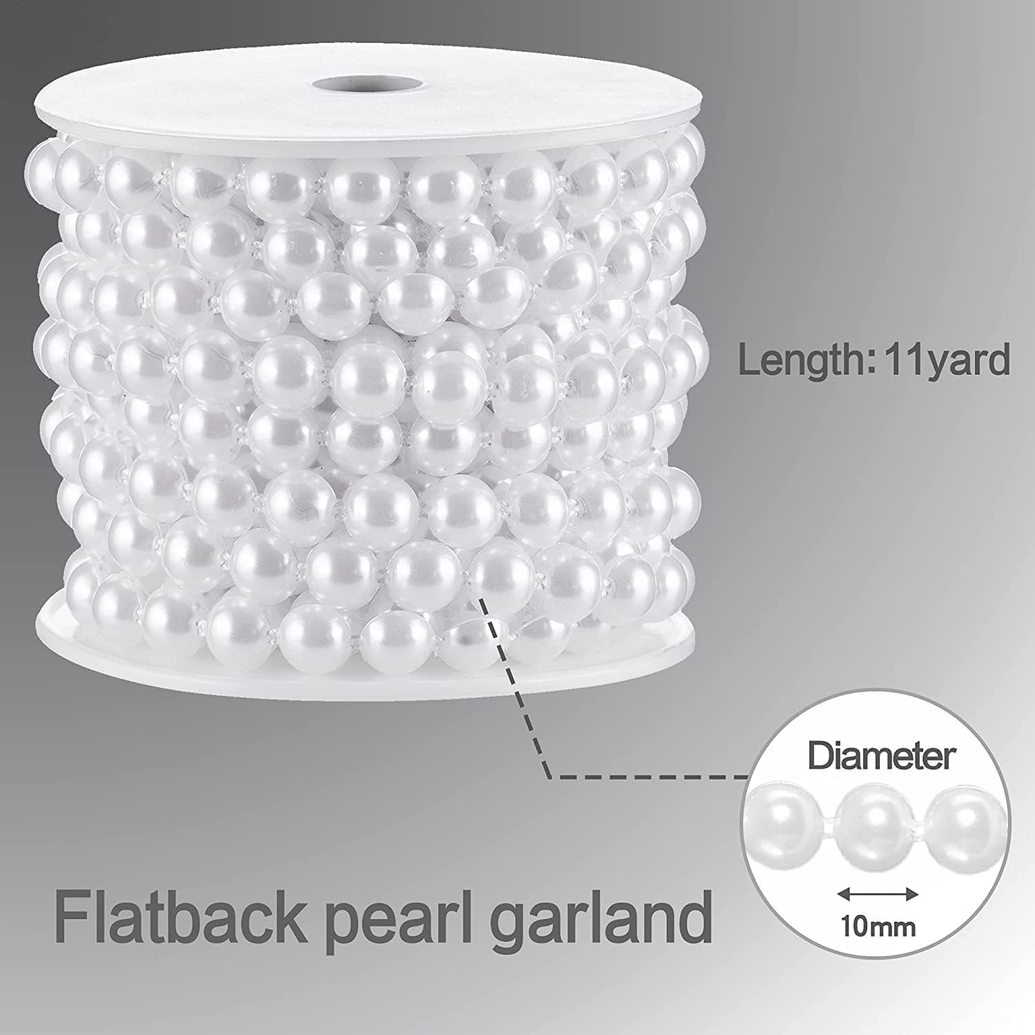 - Size: string caft pearls 11 yards long, 10 mm diameter ABS peal stands, will not fade, will not irritate the skin, waterproof and tasteless