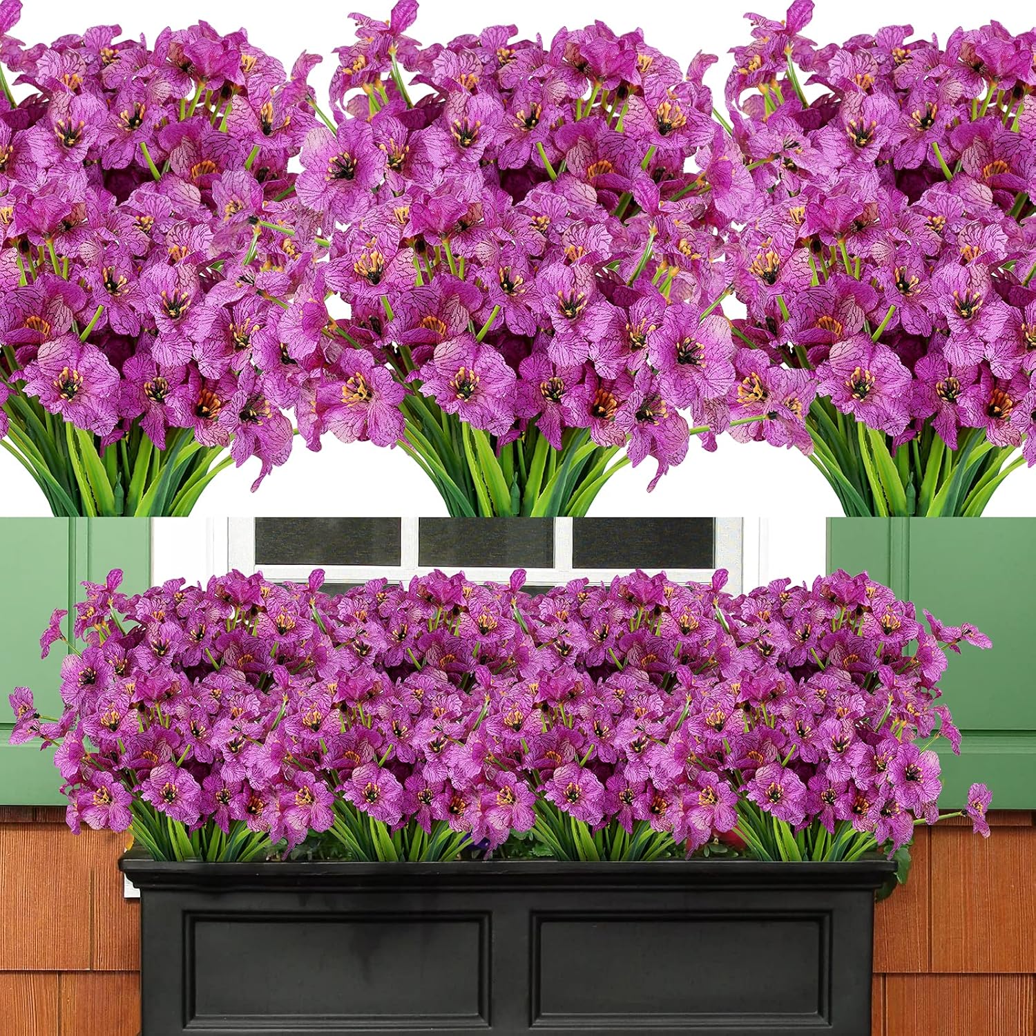 AmyHomie 20 Bundles Artificial Flowers for Outdoor Outside Spring Summer Decoration UV Resistant Faux Flowers No Fade Fake Plastic Plants Garden Porch Window Box Decorating (Purple)